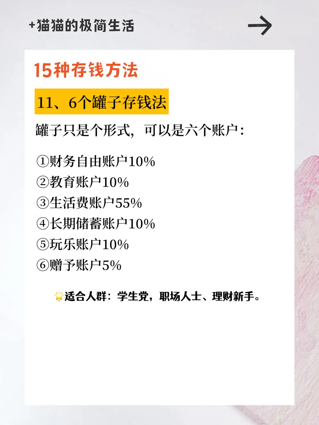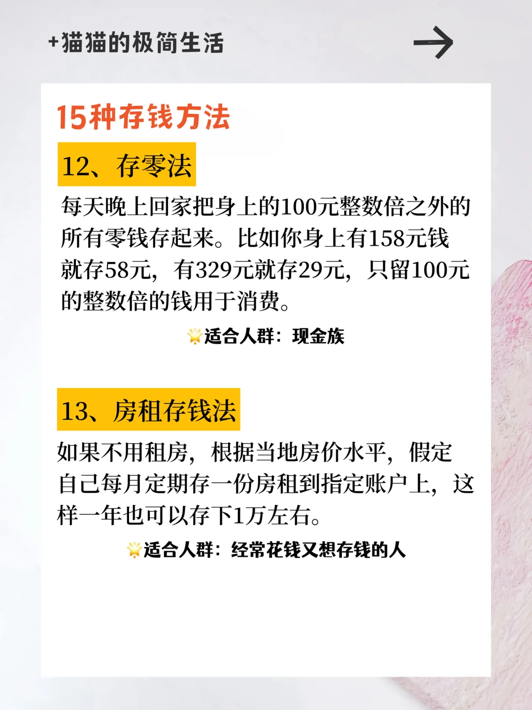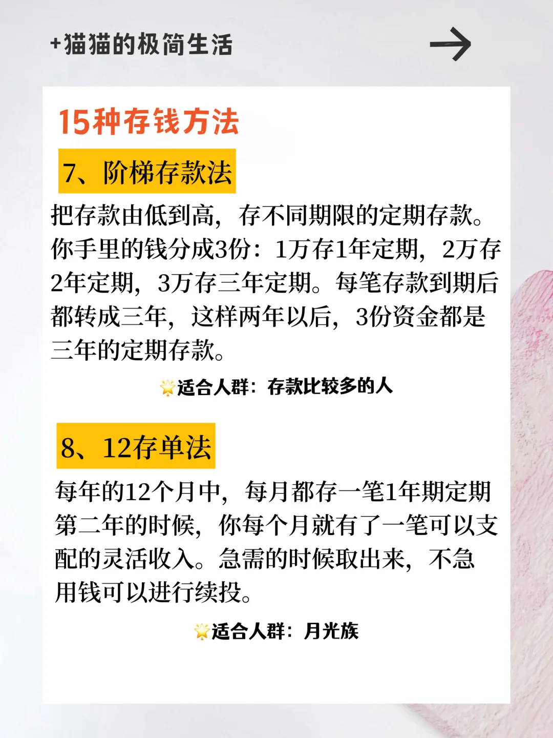 给大家汇总了全网最全的适合大众的15种存钱方法,快来看看最适合你的那种吧,get(收藏)起来,养成自己的储蓄方式