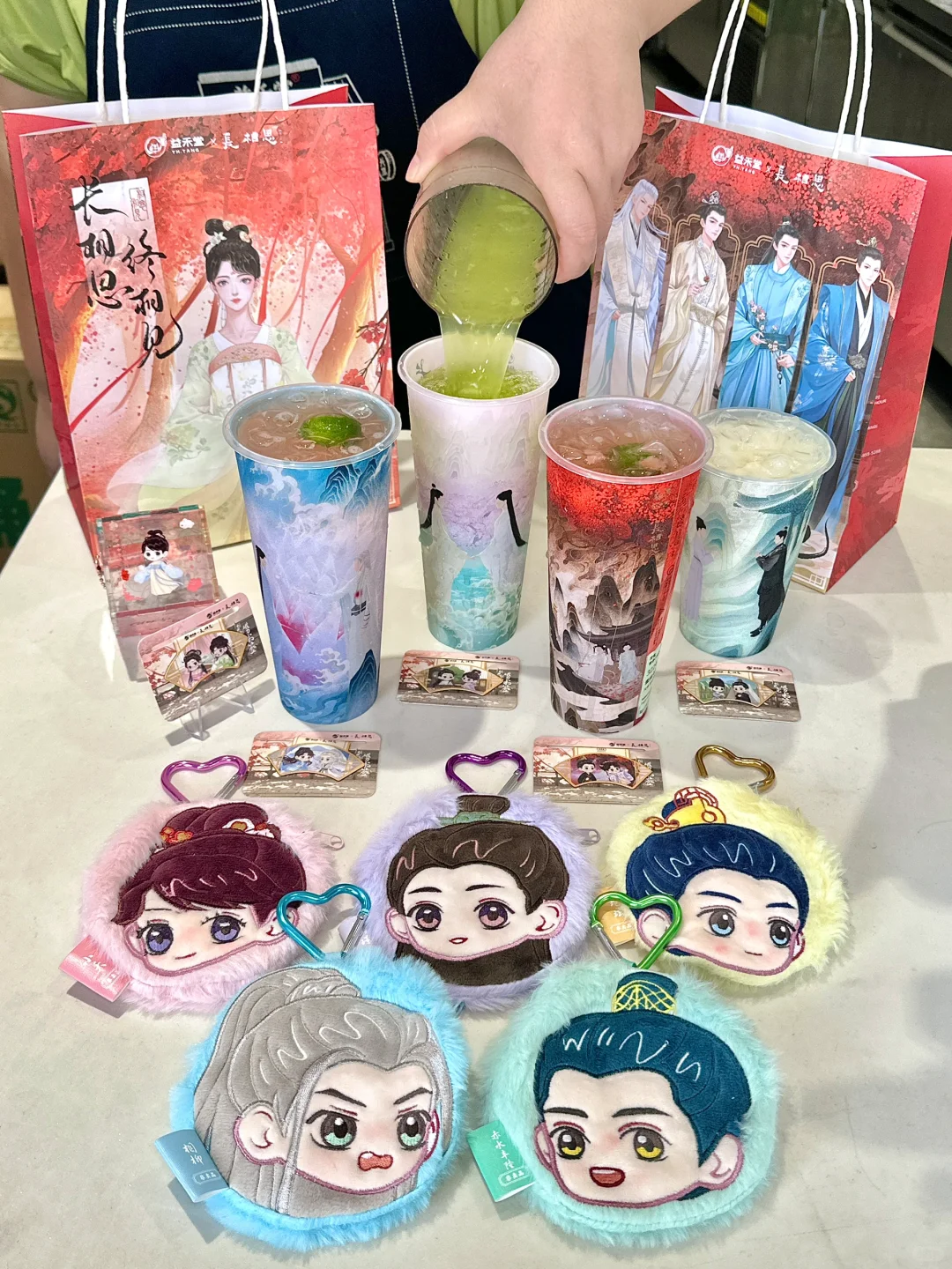 益禾堂出来让我亲亲!七夕竟和长相思二次联动了! 这次有5款联名磁力书签、5款毛绒零钱包、联名魔方、4款主题杯和纸袋! 主题杯分别是四对cp同框!!是谁磕的cp又幸福了😭😭 联名书签除了4对cp同框,还有夭念!!!这也太好磕了 毛绒钱包和魔方都可以当作包包挂件,别在包包上面就是gai上最靓的仔仔 · 周边攻略: 1️⃣长相思单杯套餐🉐联名磁力书签*1➕联名产品任选1杯 2️⃣长相思联名零钱包单杯套餐🉐联名磁力书签*1家毛绒零钱包*1➕联名产品任选1杯 3️⃣长相思联名魔方双杯套餐🉐联名磁力书签*1➕联名魔方*1➕纸袋*1➕联名产品任选2杯 · 联名奶茶都是炒鸡清爽好喝! ✔️蜜桃乌龙plus➕冰➕7分糖 桃子脑袋爱惨了这杯。。香甜的蜜桃融入丝丝的金桔,再搭配乌龙茶的清香!奶茶本身自带椰果,口感贼丰富!! ✔️手捣青提柠➕冰➕5分糖 阳光玫瑰青提混着香水柠檬的清新!茉莉绿茶底巨清爽!真的吼吼喝~太适合夏天了[色色R][色色R] ✔️栀子香轻乳茶➕冰➕7分糖 清新的栀子花和香醇牛乳的融合,口感丝滑又清爽!并且低卡无负担,可以闭眼冲! ·