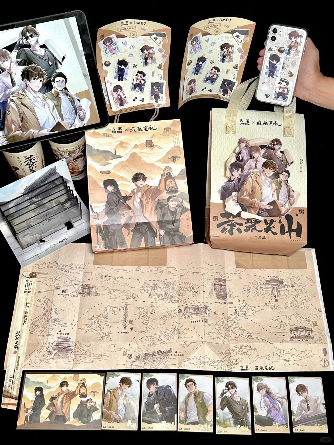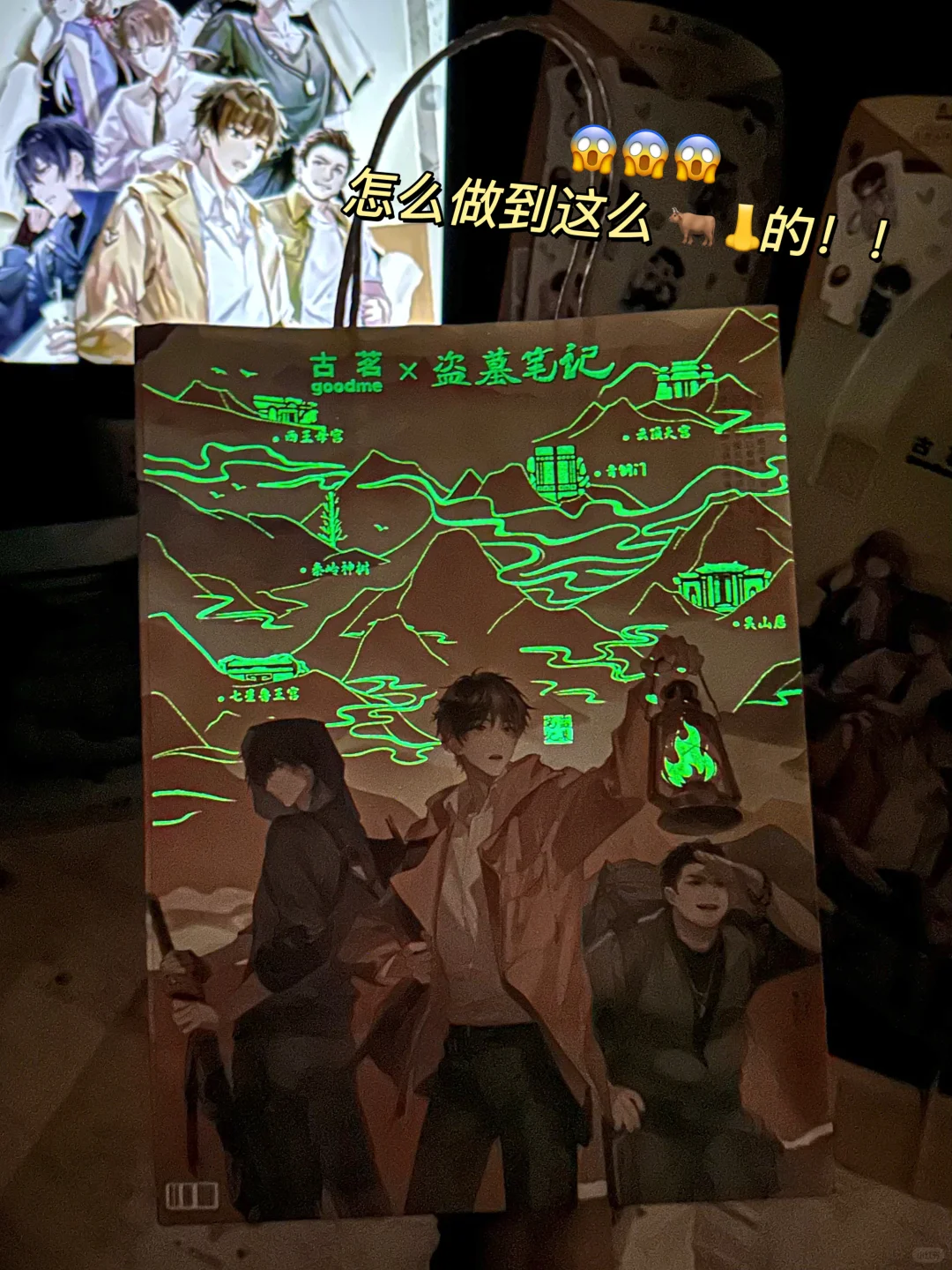 纸袋真的好细节!展开内侧是一副完整团探险经历地图!!外侧的铁三角背景是夜光的!🆘太酷了啊啊啊