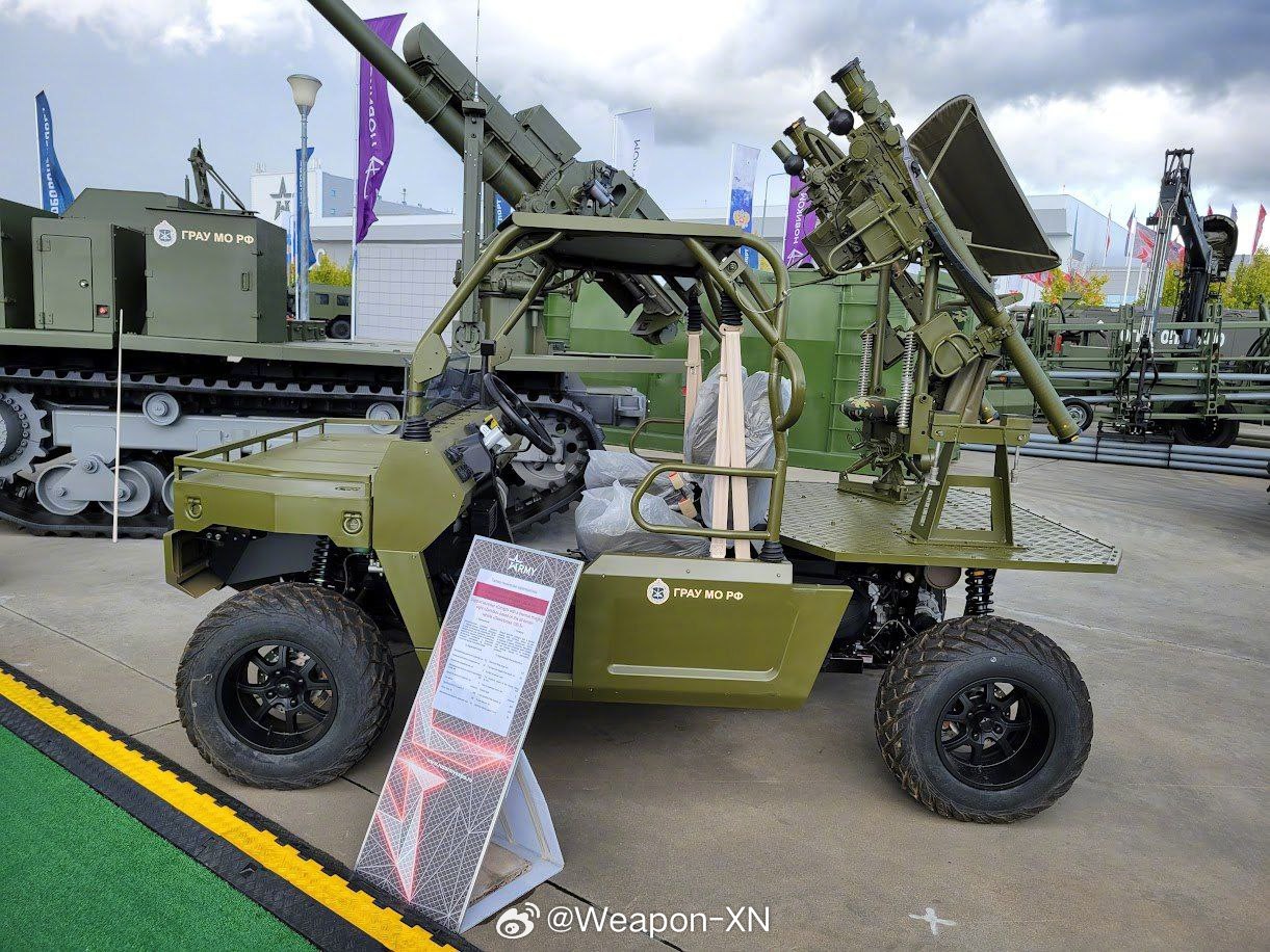 #兵器影像[超话]# 俄罗斯陆军2024论坛上,俄方展示了以中国“沙漠越野1000-3”全地形车为底盘的防空导弹发射车。