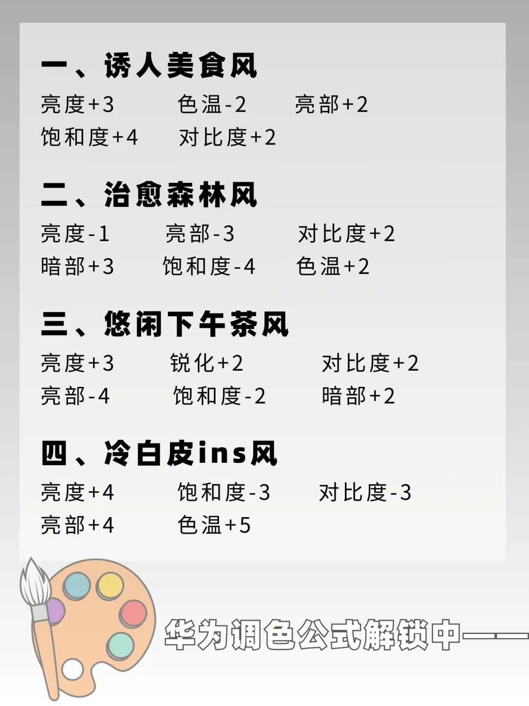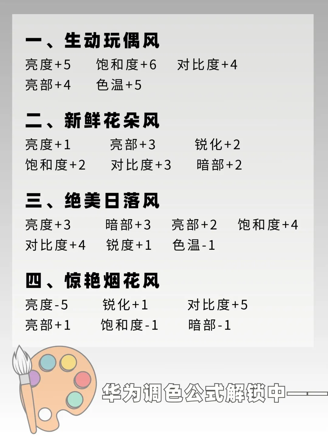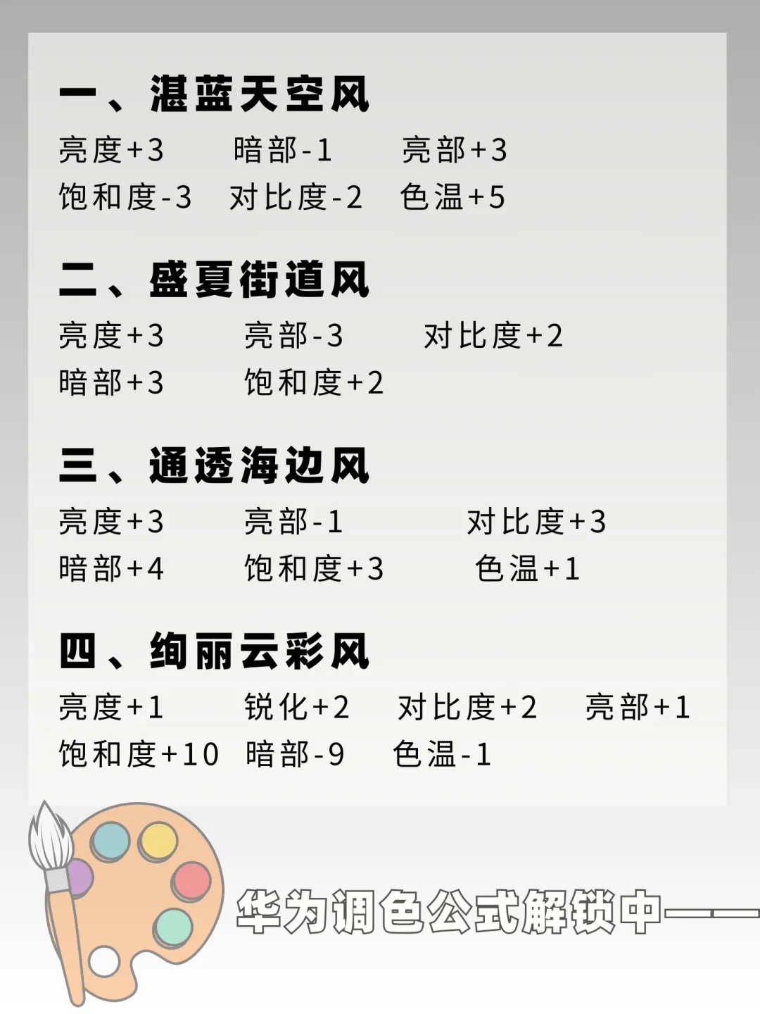 后期大法好啊,华为党get新技能,调色公式一出,拍照立马高大上,再也不怕雾里看花了!✨修图小能手就是你!🎉