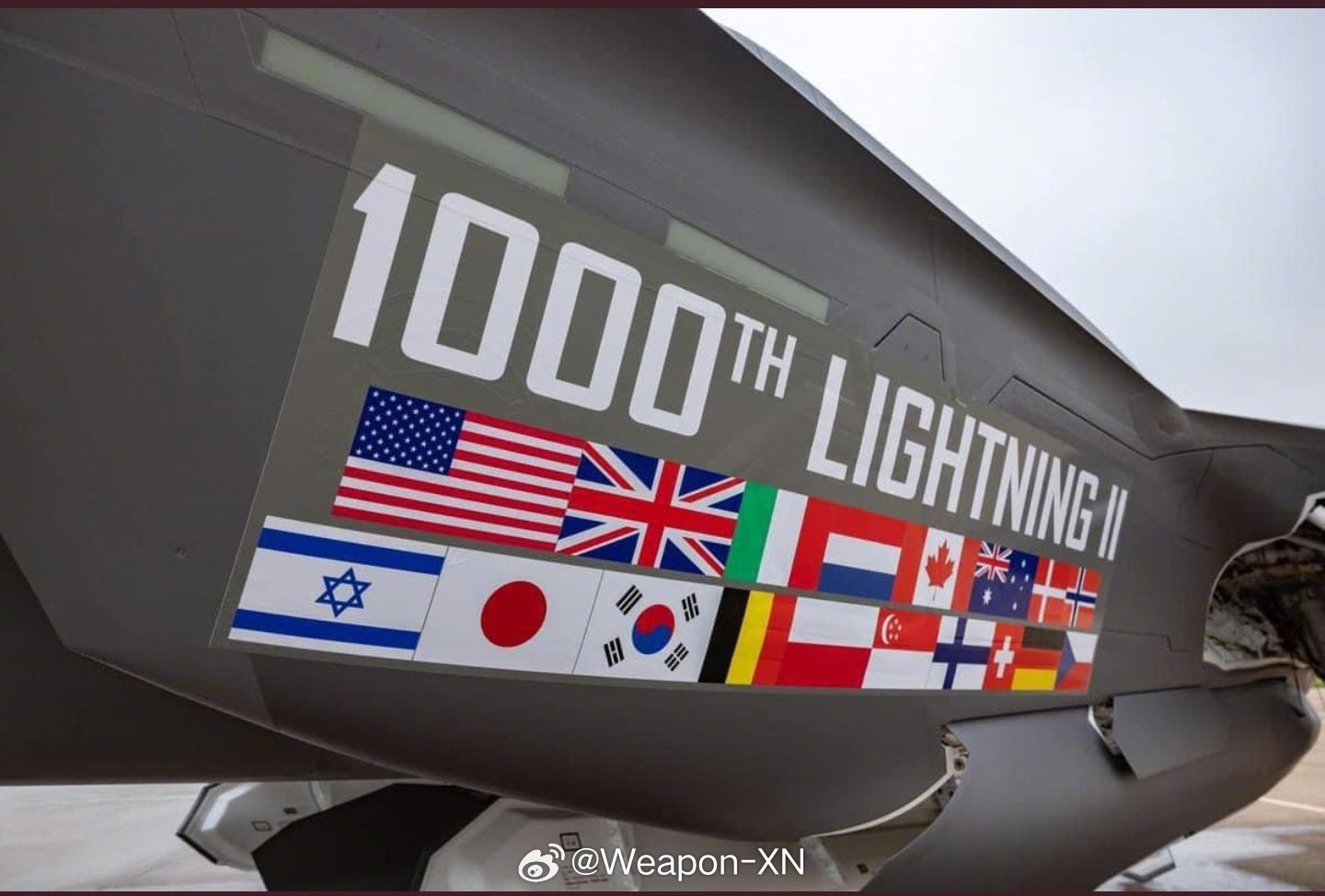 #兵器影像[超话]# 第1000架F-35战斗机机身涂了所有用户国的国旗