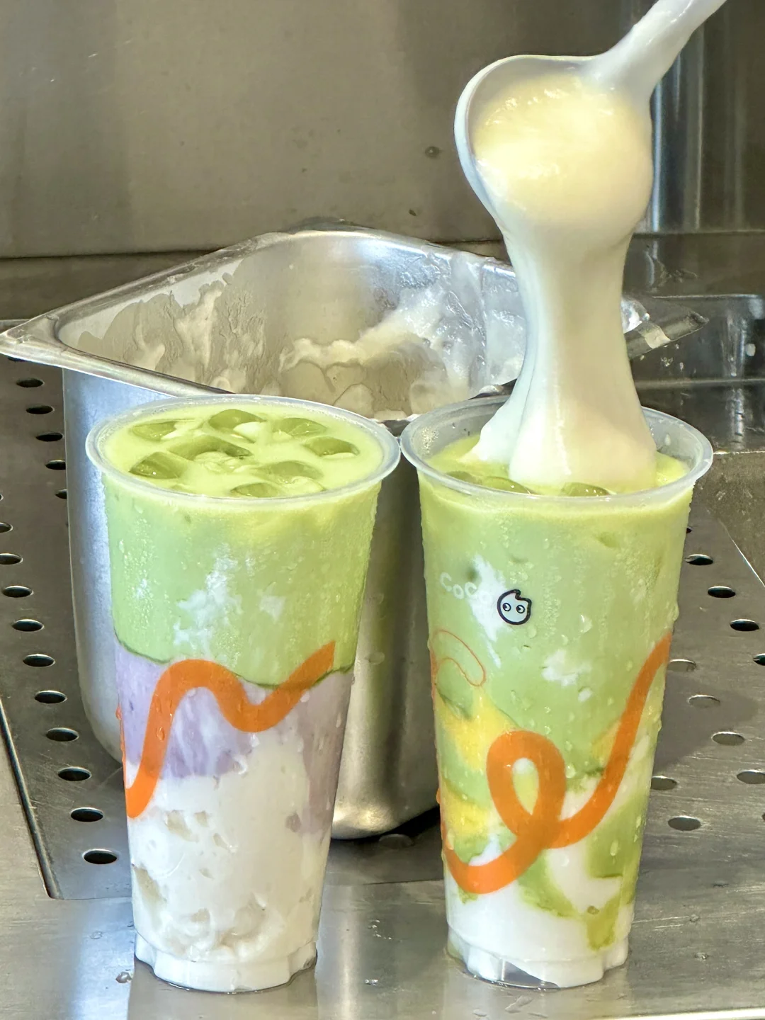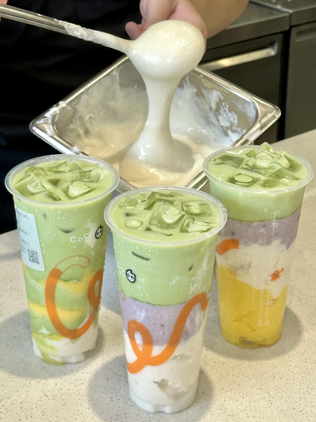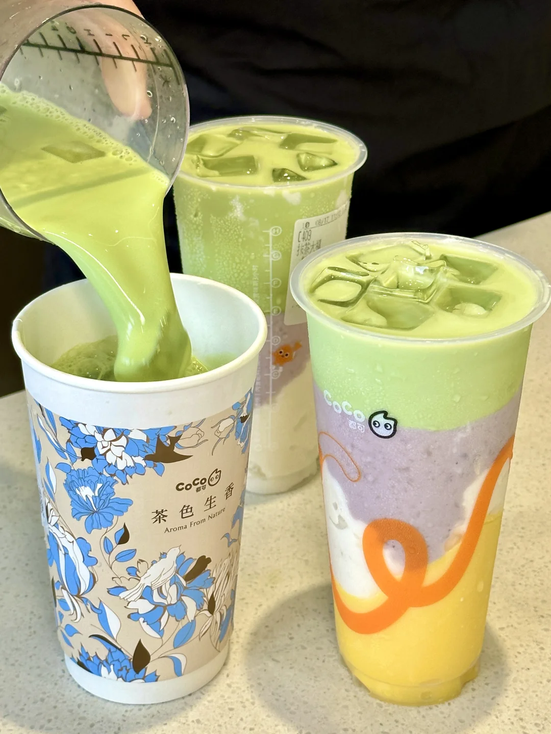 一口沦陷……Coco这杯简直研发在我心坎上啊!不好喝来打我😭 🍵抹茶大福+少冰+芋泥+布丁 抹茶控可以无脑冲‼‼真的好喝到无法用言语形容。。。麻薯含量巨巨高!一大勺下去直接拉丝!加上绵密的芋泥和滑嫩的布丁口感拉满!!七分糖yyds 🍵一抹清茉 抹茶和茉莉绿茶在嘴里3d环绕🤤🤤带着奶fufu的牛乳香敲丝滑、hin清爽不会腻!好喝到离谱啊!!!