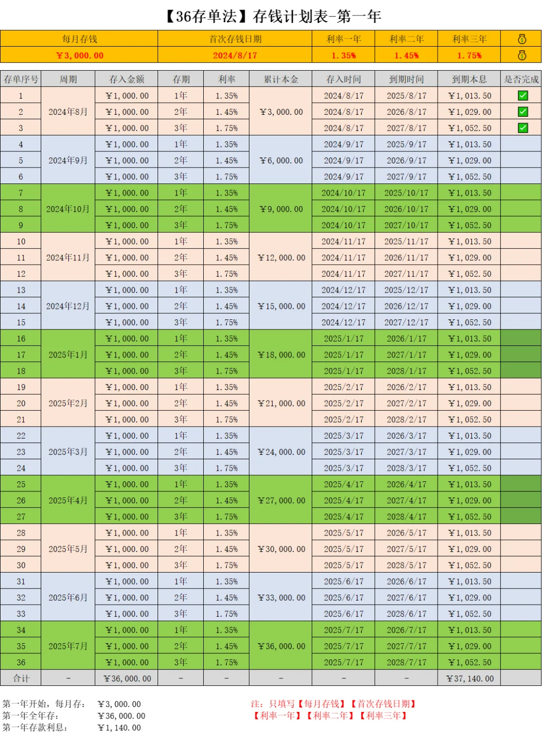 之前有和大家分享各种存钱方法,这个月开始我也要用36存单法正式打卡存钱啦
