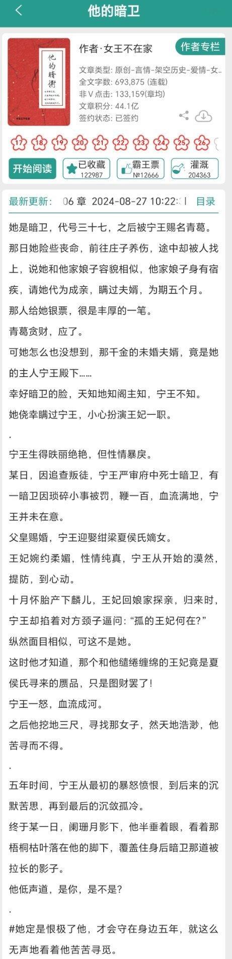 最近在追女王不在家的《他的暗卫》,我就想知道女主是怎么掉马的,哈哈~言情小说女王不在家他的暗卫
