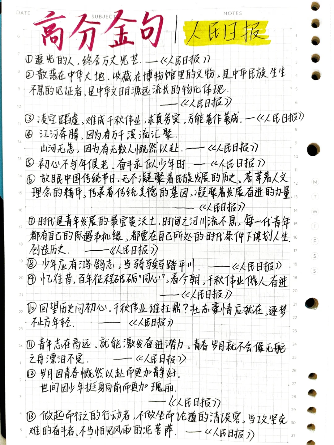 ⑦时代是青年发展的最宝贵沃土,时间之河川流不息,每一代青年 都有自己的际遇和机缘,都要在自己所处的时代条件下谋划人生,创造历史。—《人民日报》