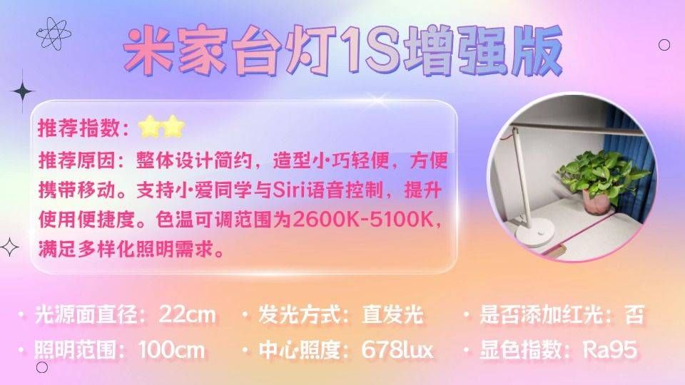 推荐理由:综合护眼表现远超同价位台灯,稳坐百元价位内护眼台灯领域的天花板级位置。