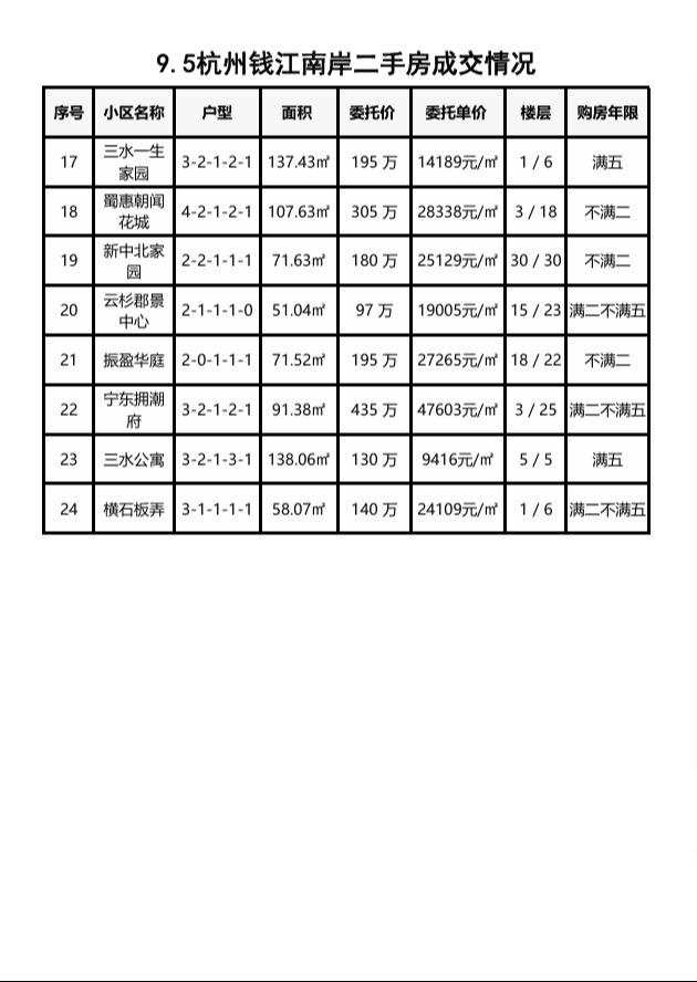 9.5杭州钱江南岸(萧山和滨江)二手房每日成交数据分享,昨日共成交24套,市场以