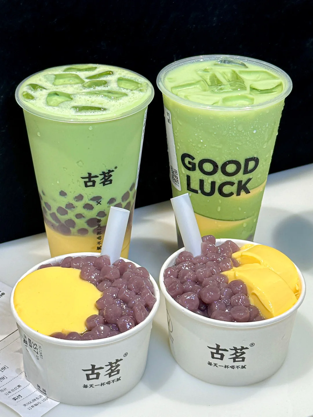啊啊啊古茗抹茶终于回归了!!抹茶脑袋真的喝不腻!!不愧是江南抹茶“特”调更浓郁了😭每一口都能喝到丰富小料!像抹茶甜品!还有三款选择好丰富啊~ · 🍵抹茶布蕾:抹茶+布蕾+紫米丸子!!抹茶味巨巨浓郁!!自带入口即化的布蕾,还有新小料紫米丸子,软糯q弹好好吃啊!!正常冰五分糖yyds 🍵茉香云顶抹茶:抹茶和茉莉花茶的清香在嘴里360℃环绕🤤顶上的奶芙加坚果碎巨巨好吃!!经典搭配就是香! 🍵芝士抹茶牛乳:抹茶+牛奶+芝士奶盖!又奶又醇又清爽!层次好丰富,我可以一直喝!!! ·