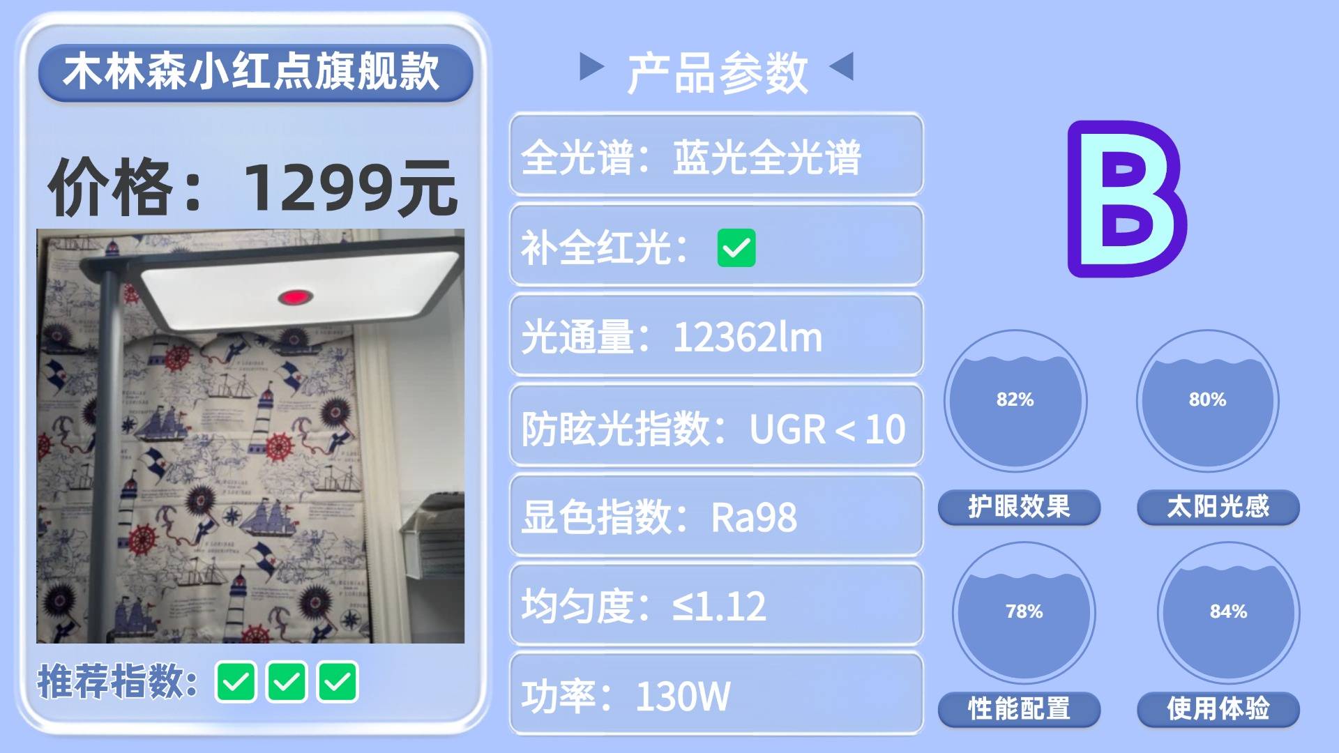 推荐款:木林森小红点旗舰款——上下发光设计,能够呈现出10120lm光通量的光线。