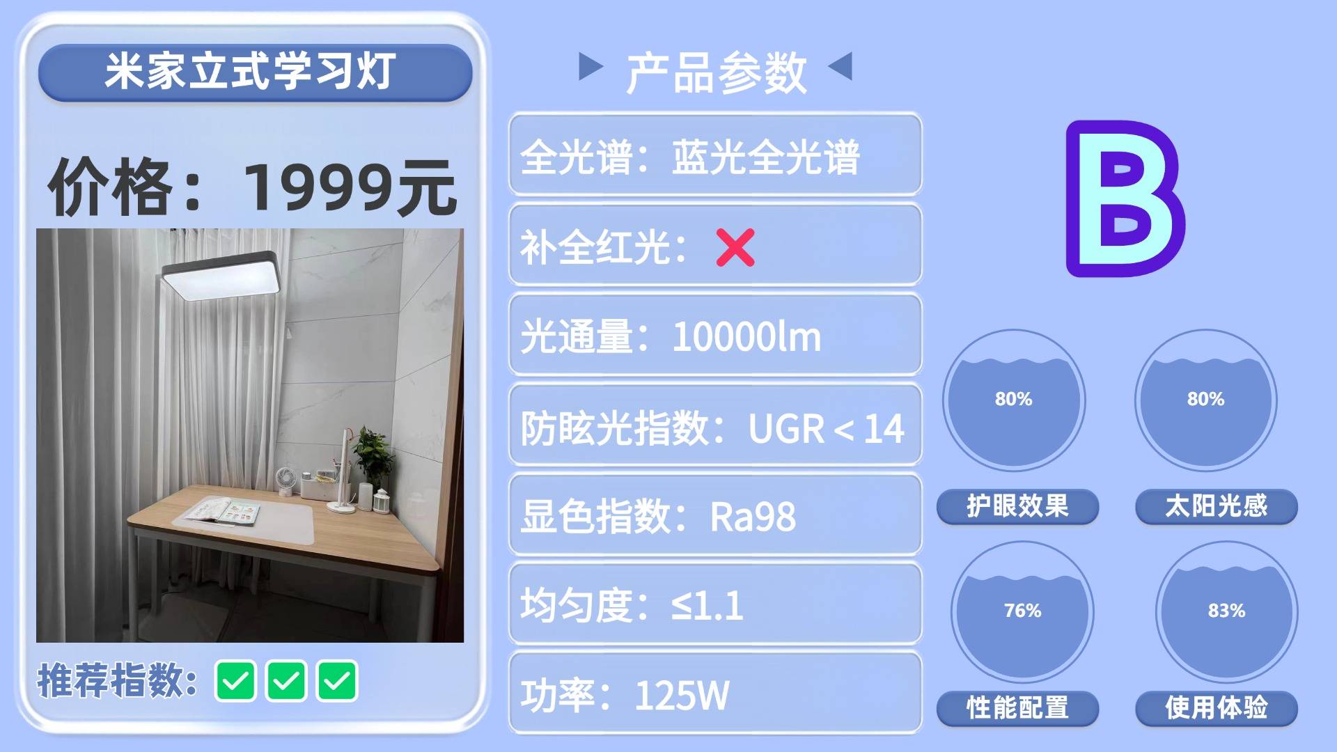 推荐款:米家立式学习灯——发光面支持90°旋转调节,外观符合人体工学设计。