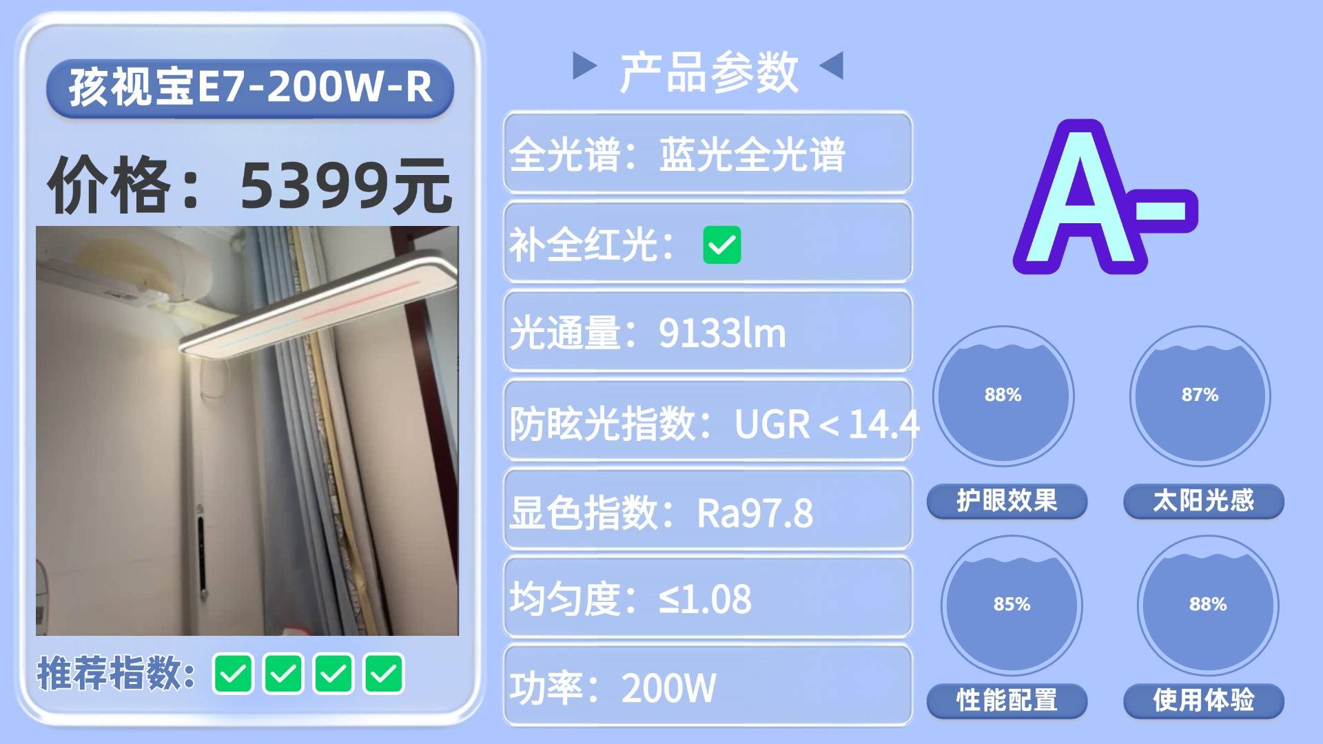 推荐款:孩视宝E7-200W-R——支持无级亮度调节、入座感应等智能化辅助。
