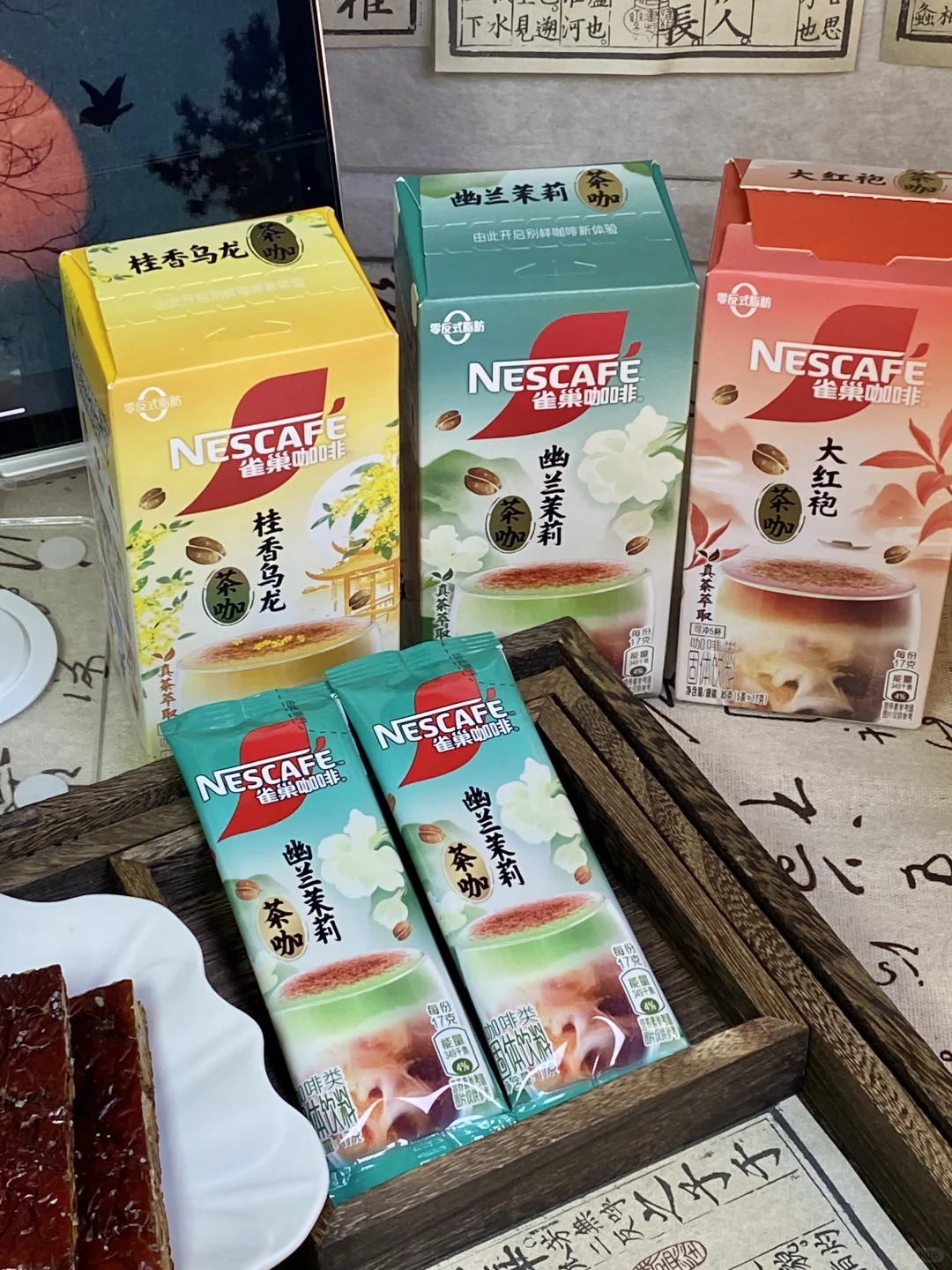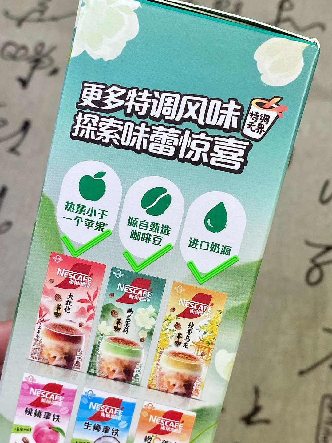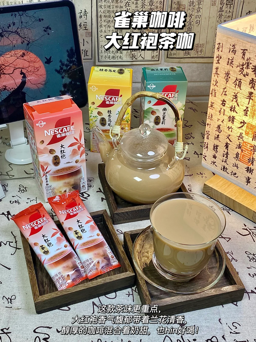 雀巢研发部真的要给你加鸡腿!真的太太好喝了!咖啡➕茶➕奶谁喝谁不爱!! 在家随便冲泡了一下 我朋友还以为我在哪家新开的下午茶店!🤫 三个口味都不踩雷! - 幽兰茉莉茶咖☕️ 冲泡过程中都能散发出浓浓的茉莉花香,混着咖啡香,口感很丰富!尊嘟好喝耶! - 大红袍茶咖☕️ 这款茶味更重点,大红袍香气馥郁带着兰花清香,醇厚的咖啡混合着奶甜,也hin好喝! - 桂花乌龙茶咖☕️ 桂花的香气很扑鼻很适合现在入秋了喝,融合乌龙茶,口感很细腻!好喝! 特调茶咖采用真茶萃取工艺融合gao品质咖啡豆和进口奶的组合,三重醇香~而且0️⃣植脂末0️⃣反式脂肪酸,热量也小于1个苹果,放心大胆冲,健康无负担!