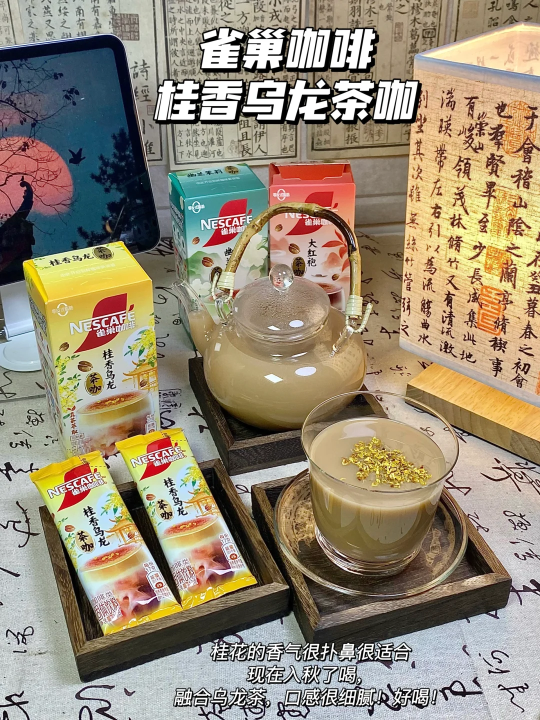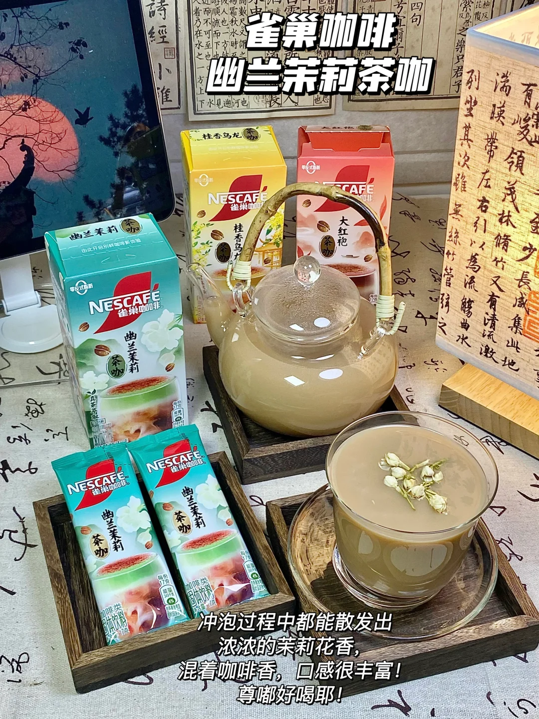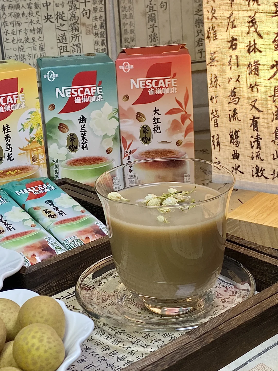 雀巢研发部真的要给你加鸡腿!真的太太好喝了!咖啡➕茶➕奶谁喝谁不爱!! 在家随便冲泡了一下 我朋友还以为我在哪家新开的下午茶店!🤫 三个口味都不踩雷! - 幽兰茉莉茶咖☕️ 冲泡过程中都能散发出浓浓的茉莉花香,混着咖啡香,口感很丰富!尊嘟好喝耶! - 大红袍茶咖☕️ 这款茶味更重点,大红袍香气馥郁带着兰花清香,醇厚的咖啡混合着奶甜,也hin好喝! - 桂花乌龙茶咖☕️ 桂花的香气很扑鼻很适合现在入秋了喝,融合乌龙茶,口感很细腻!好喝! 特调茶咖采用真茶萃取工艺融合gao品质咖啡豆和进口奶的组合,三重醇香~而且0️⃣植脂末0️⃣反式脂肪酸,热量也小于1个苹果,放心大胆冲,健康无负担!