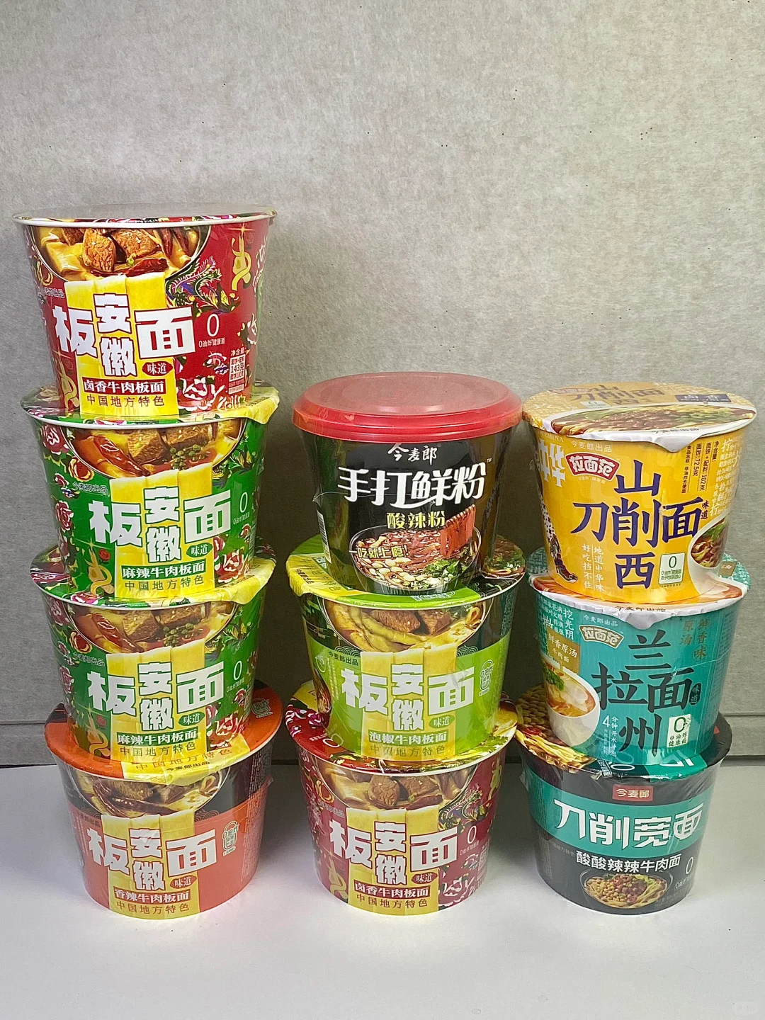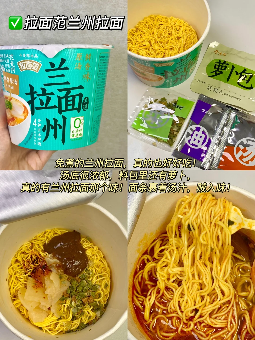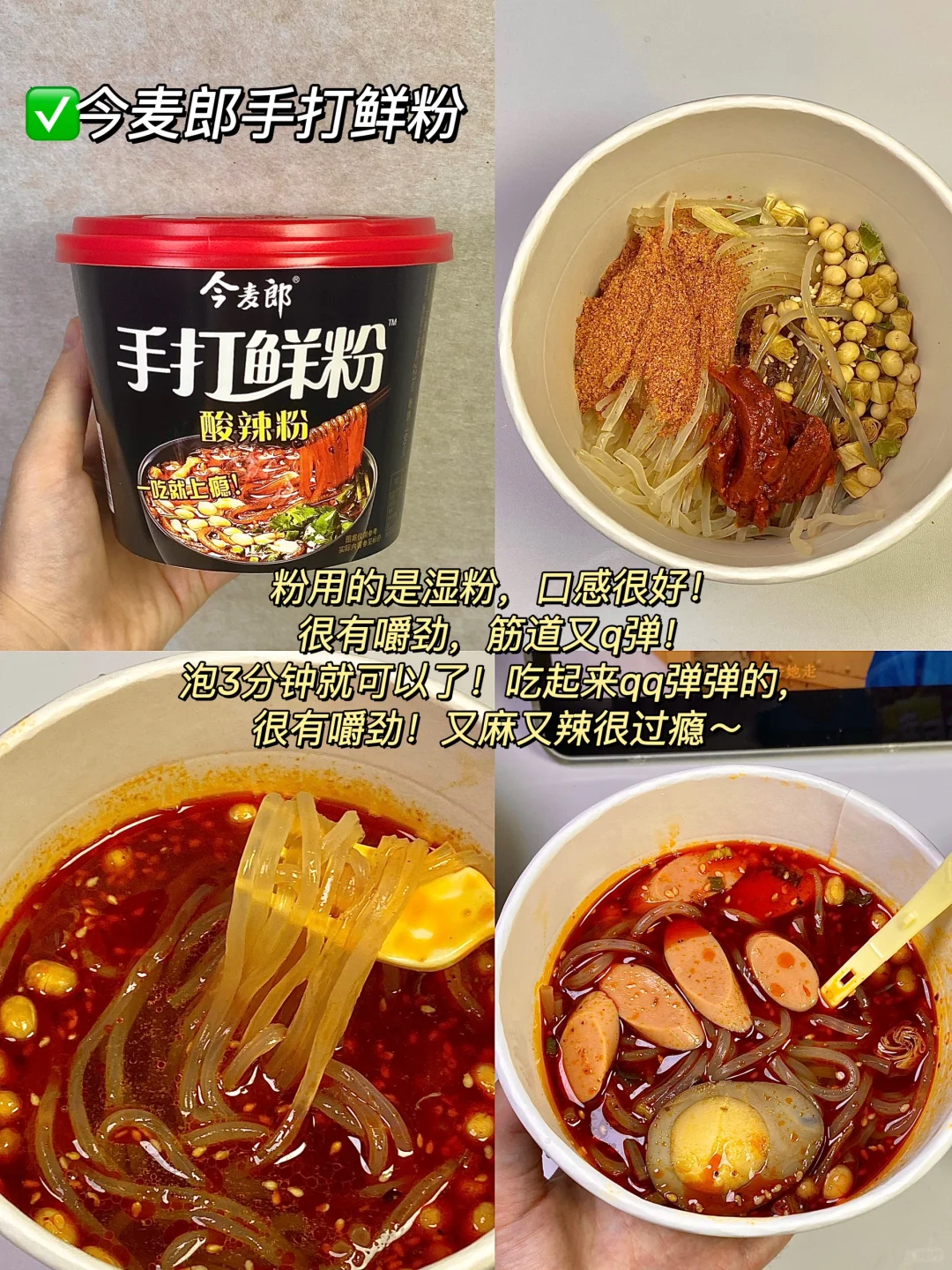 分享一下本人私藏的泡面 这四款每一个都巨巨好吃! 吃起来又麻又辣很过瘾,太适合能吃重口味的宝子 了! 1⃣️今麦郎手打鲜粉 粉用的是湿粉,口感很好!很有嚼劲,筋道又q弹!泡3分钟就可以了!吃起来qq弹弹的,很有嚼劲!又麻又辣很过瘾~ 2⃣️拉面范兰州拉面 免煮的兰州拉面,真的也好好吃!汤底很浓郁,料包里还有萝卜,真的有兰州拉面那个味!面条裹着汤汁,贼入味! 3⃣️拉面范山西刀削面 拉面范山西刀削面!万年回购!真的太太好吃了!浪花型面条,还自带灵魂醋包,吃一口就停不下来了!!面条宽宽的贼有劲道!吸满汤汁真的好爱这种口感 4⃣️今麦郎安徽板面 无意在超市买了一桶板面 回家直接买了一箱!!已经连续吃几天了 面条吸满满牛油汤底!!贼入味!!两指宽的宽面,贼拉有筋道! 今麦郎安徽板面!!我要给你加大分!