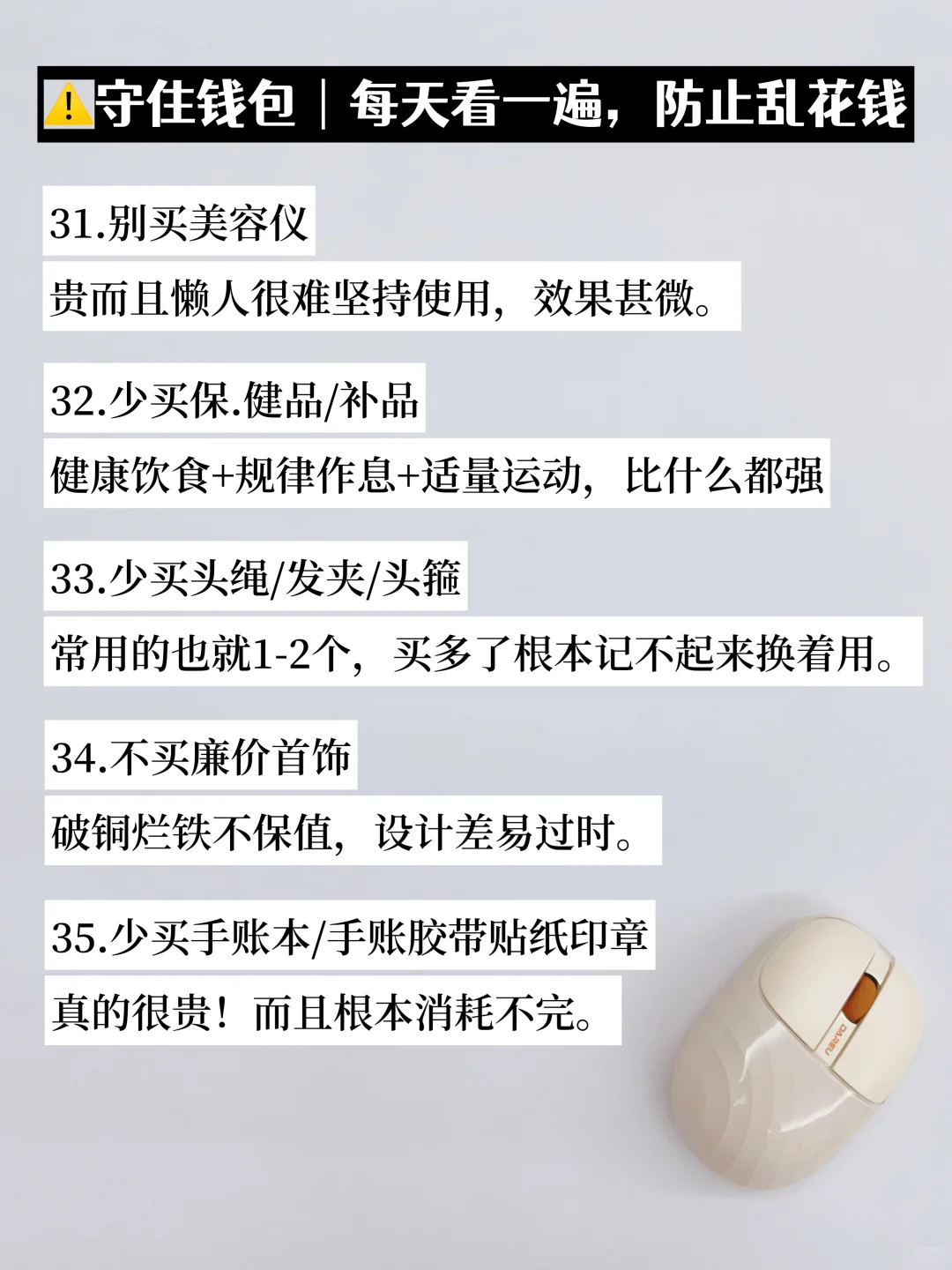 我总结了自己成功省下钱的50个不乱买清单,希望能帮助到大家~