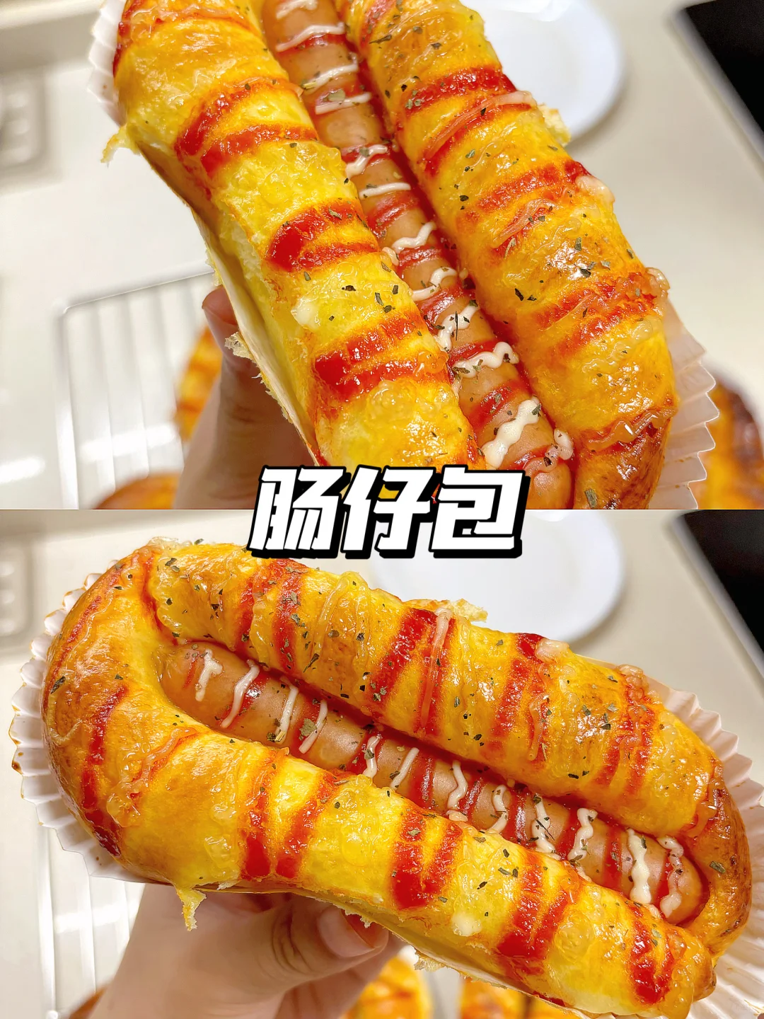 1️⃣高筋面粉250克,白糖40克,鲜酵母12克(干酵母4克),奶粉12克,鸡蛋一个,牛奶110克,盐3克,黄油30克,肠仔8根(11.5㎝);纸托8个(14.3㎝)