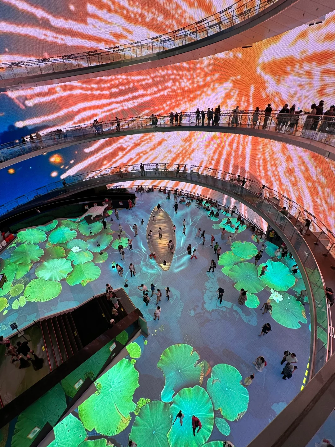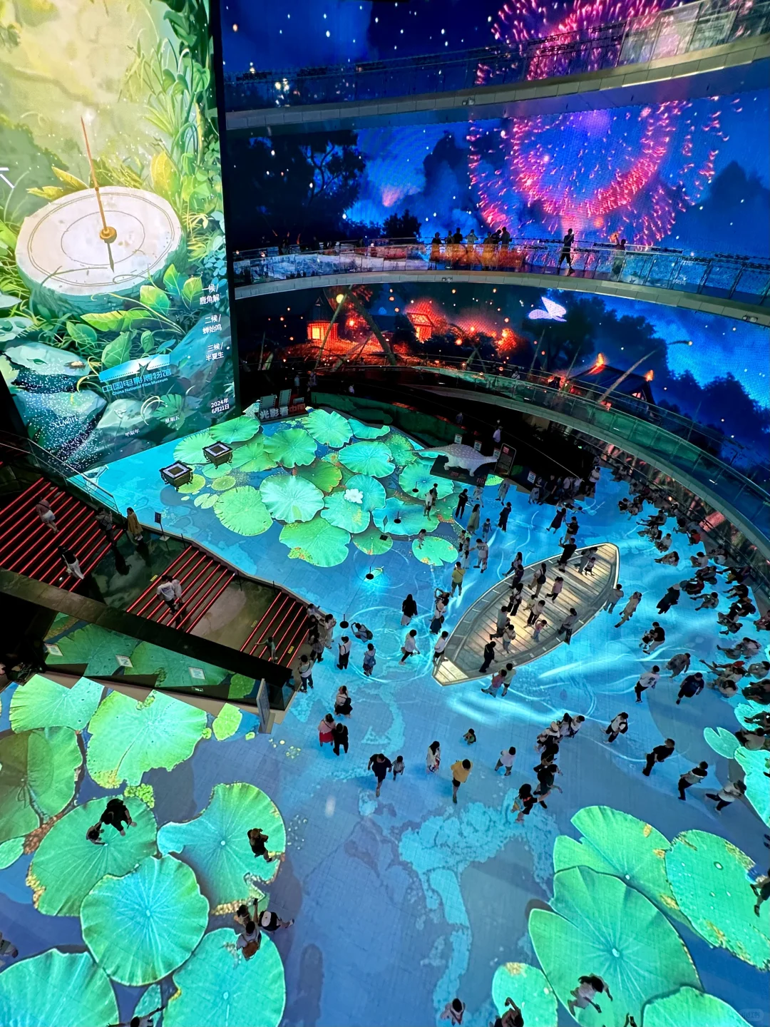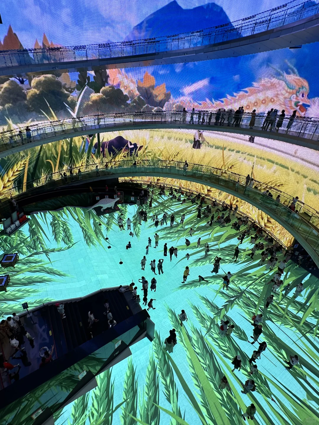 【中央圆厅】:几层高的环绕动画,有星辰大海、城市景观、24节气,可以到3层拍摄