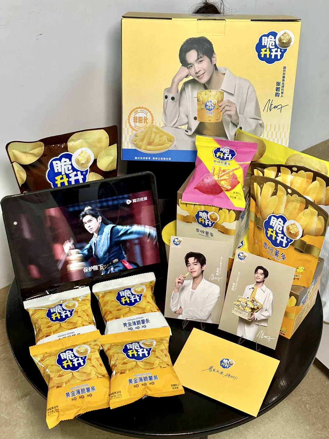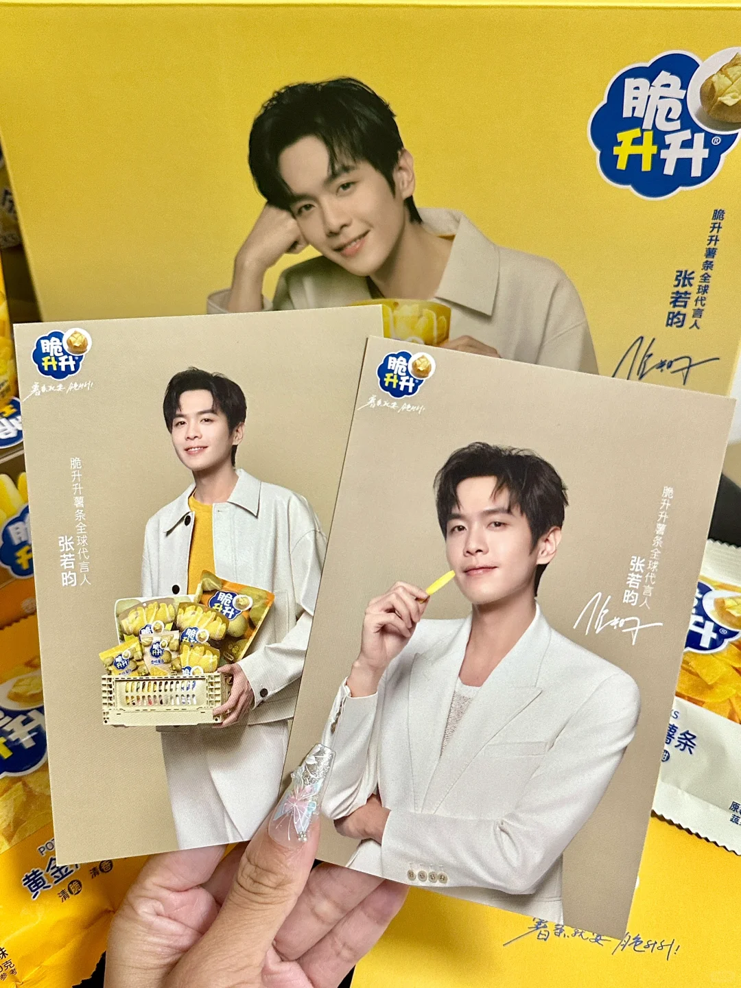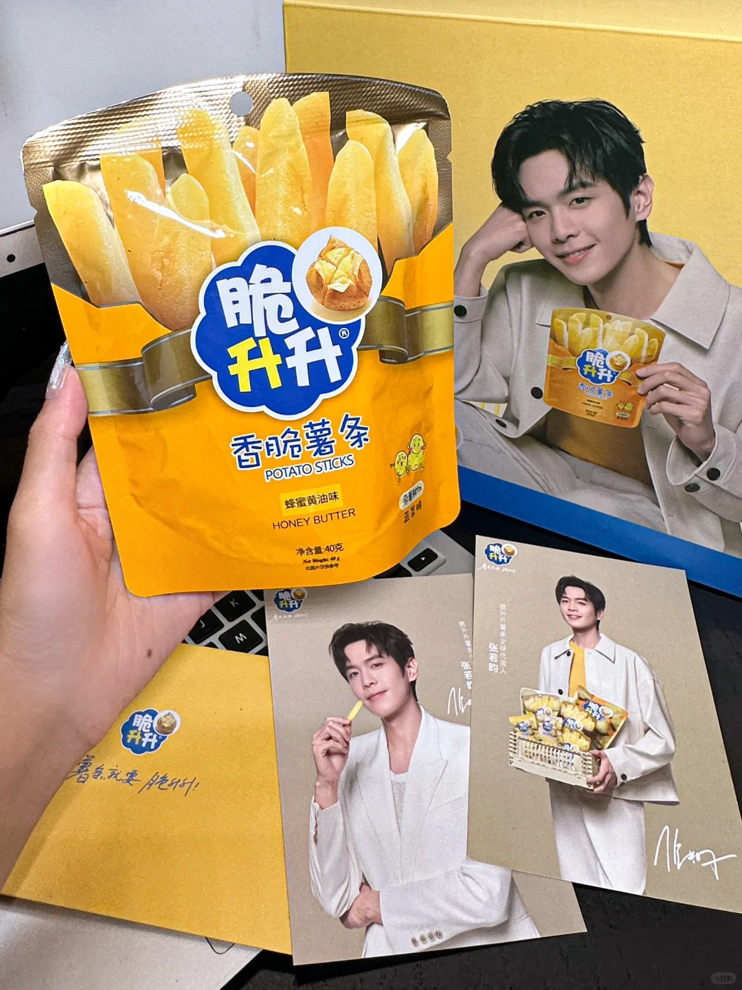 卧卧卧。。张若昀代言的薯条礼盒还送明星周边