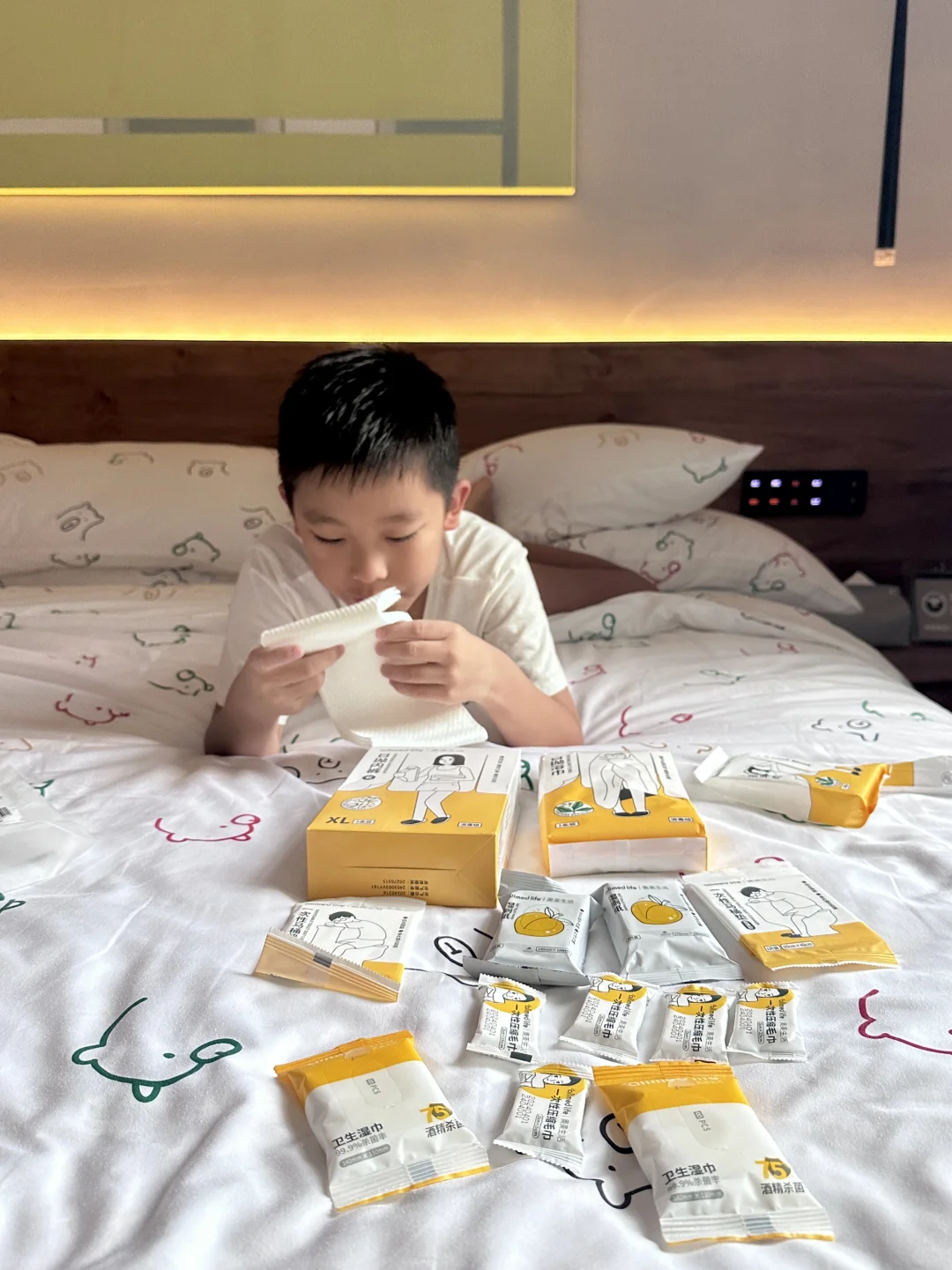 -带小朋友出门,我都是会带一次性浴巾,毛巾,湿巾,内裤等各种大包小包很麻烦。这次被朋友安利奥美生活一次性出行包,小小一包各种搭配齐全,再搭配一盒一次性内裤就很齐活了!像一次性浴巾和毛巾还是消du级的,厚实又柔软真的很方便,小朋友玩得敲开心
