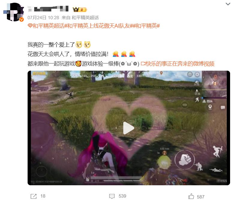 前段时间,《和平精英》以“花傲天”为原型,推出的全新升级版AI队友——“AI 花傲天”,就因为拥有记忆力这一独特优势,能与玩家建立更稳固的情感连接,从而在“陪玩”基础上,满足玩家更深层次的陪伴需求,迅速俘获了大量玩家的喜爱。在各大社交网络上,随处可见玩家和粉丝们自发分享的有趣互动片段,这一创新充分展现了《和平精英》团队在AI等前沿技术领域的探索成果。