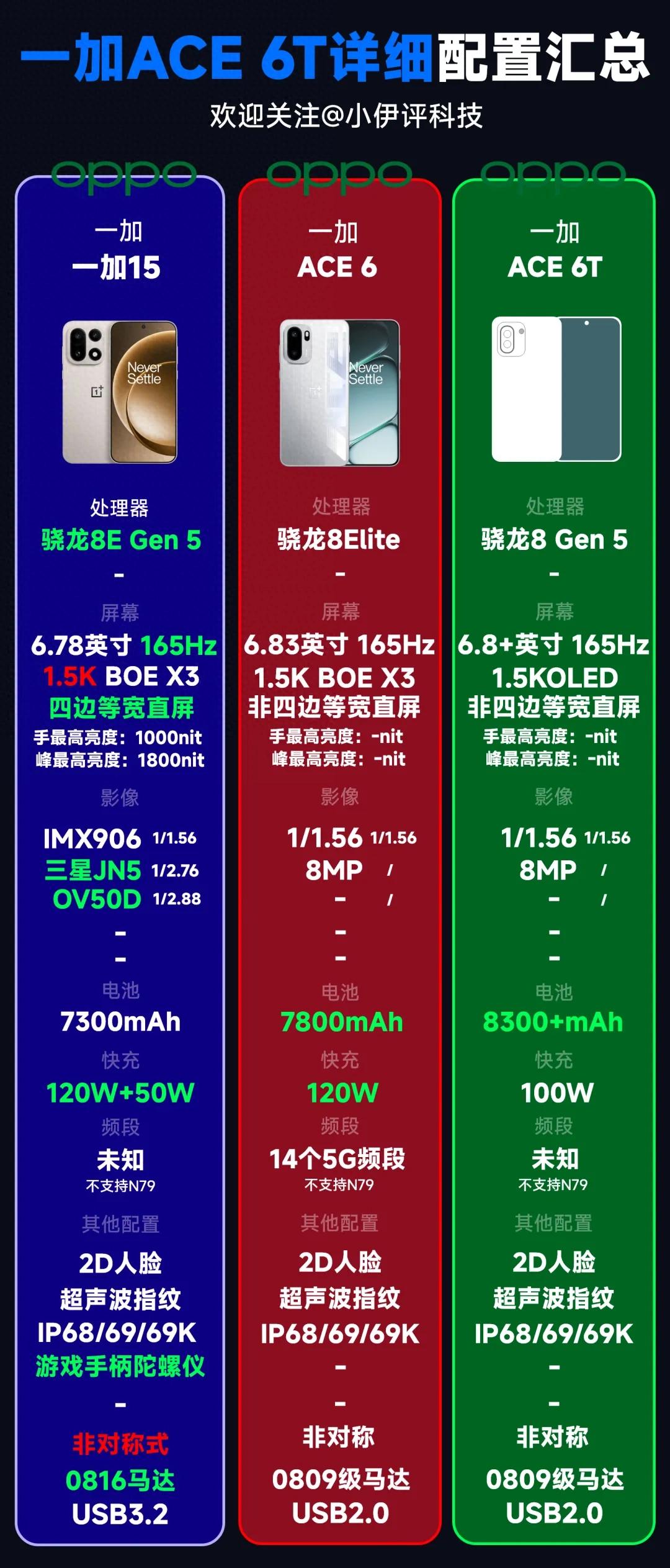 首先还是一加ACE 6T的一图流,如下所示,全部基于目前已知的信息做汇总,如果有出入请大家指出。
