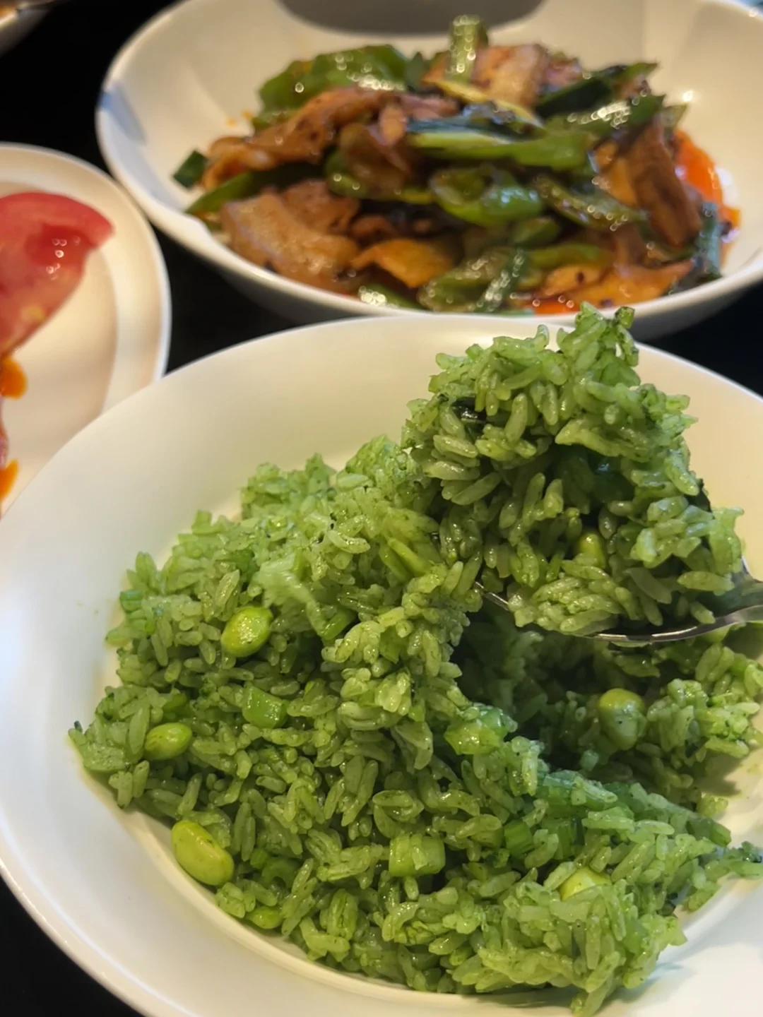 ▪️奇迹彗星炒饭:绿油油的颜值好高!里面有毛豆和青菜吃起来米粒饱满,超级香。而且咸淡合适,老人小孩都适合吃哦。