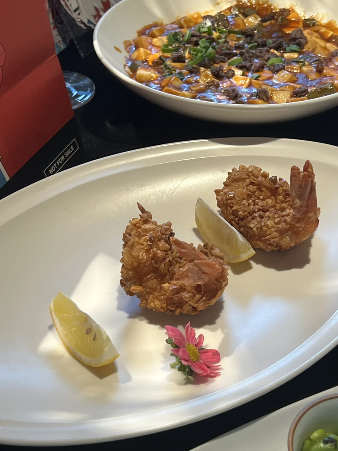 ▪️炸凤尾虾:一口咬下去特别酥脆!炸衣里还加了花生粒🥜嚼起来又香又脆。搭配弹嫩鲜甜的大虾,层次感也好丰富👍🏻