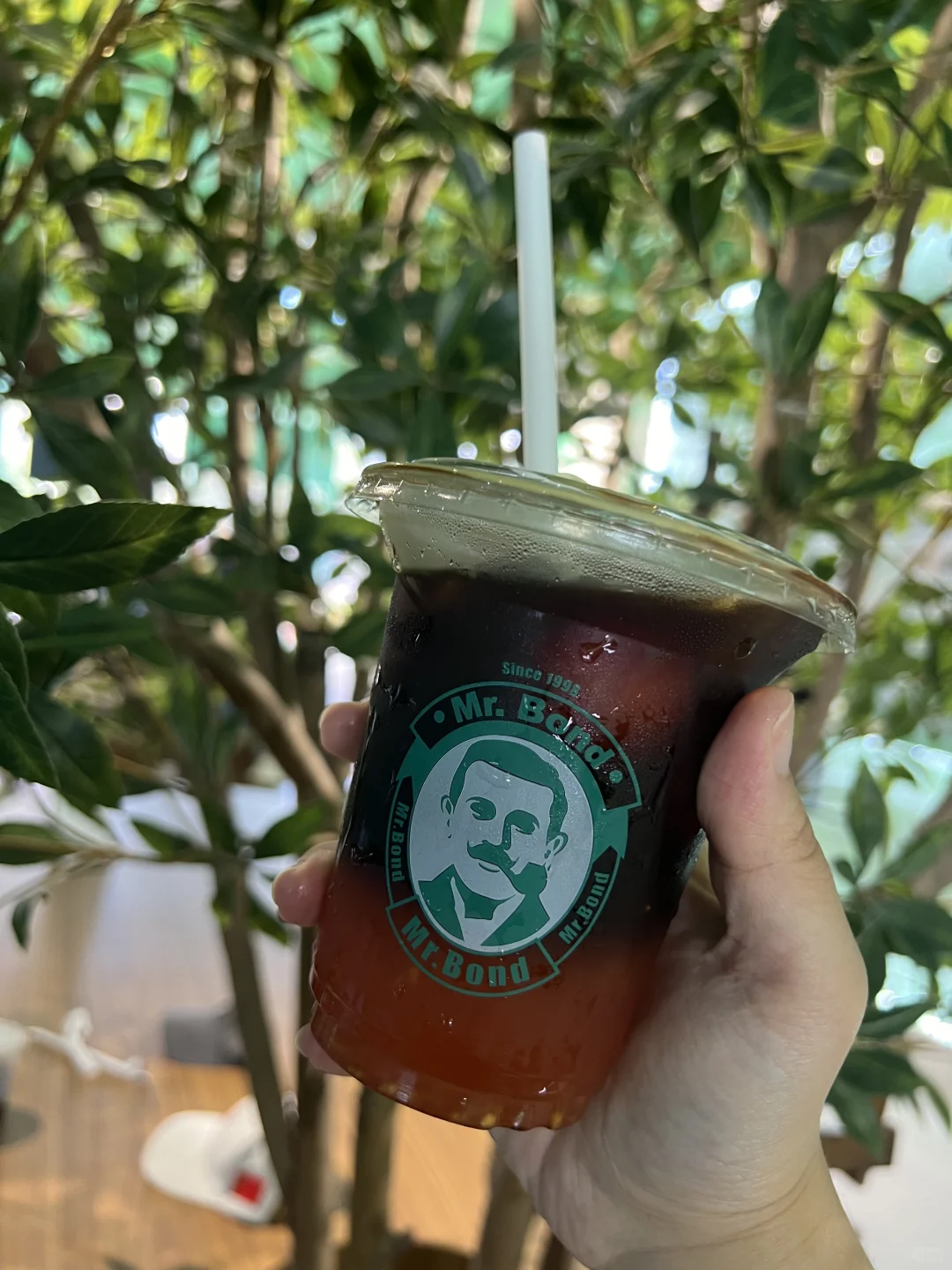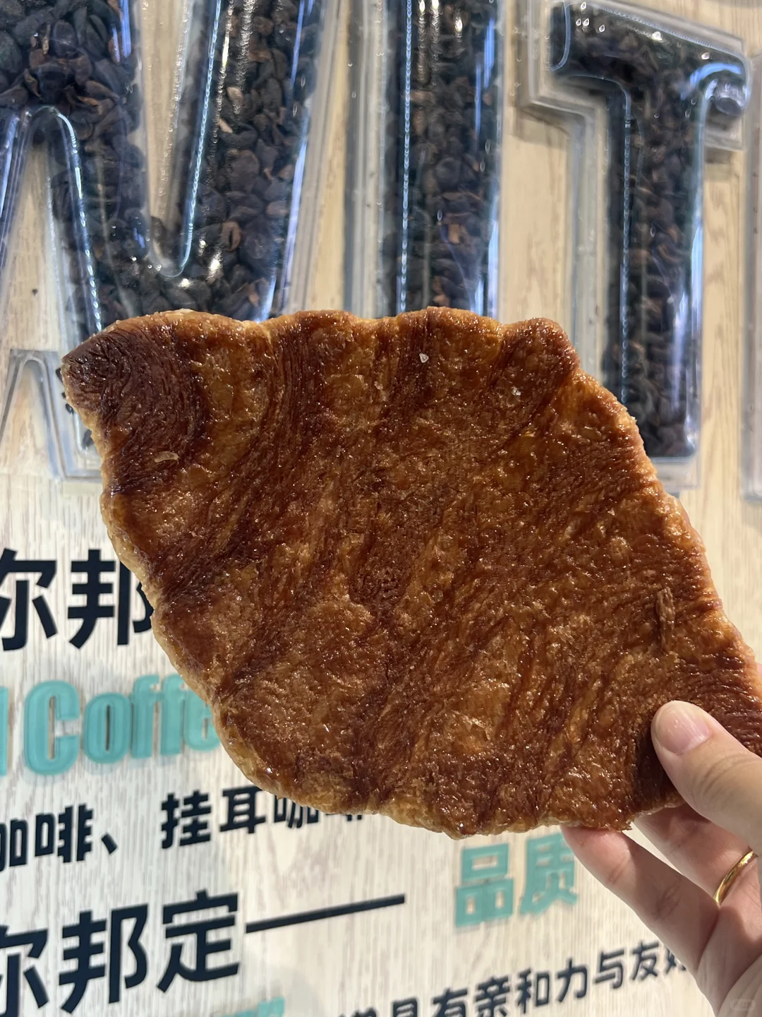 旺旺的邦德咖啡居然悄悄的开了一家实体店! 就在神旺大酒店旁边!这可是首店哦👊 店里头牌是番茄枸杞美式☕️你没听错‼️ 养生系的咖啡真是很有创意🤔 味道真的是不错,每杯里用的都是新鲜的小番茄🍅 搭配现萃咖啡果皮咖啡,酸酸甜甜的,没有美式的苦涩感,喝起来真是好清爽开胃! 🥐焦糖扁可颂 一口咬下去超酥脆!焦糖香气和黄油🧈结合,奶味浓郁!吃起来甜而不腻,和美式真是jue配✔️