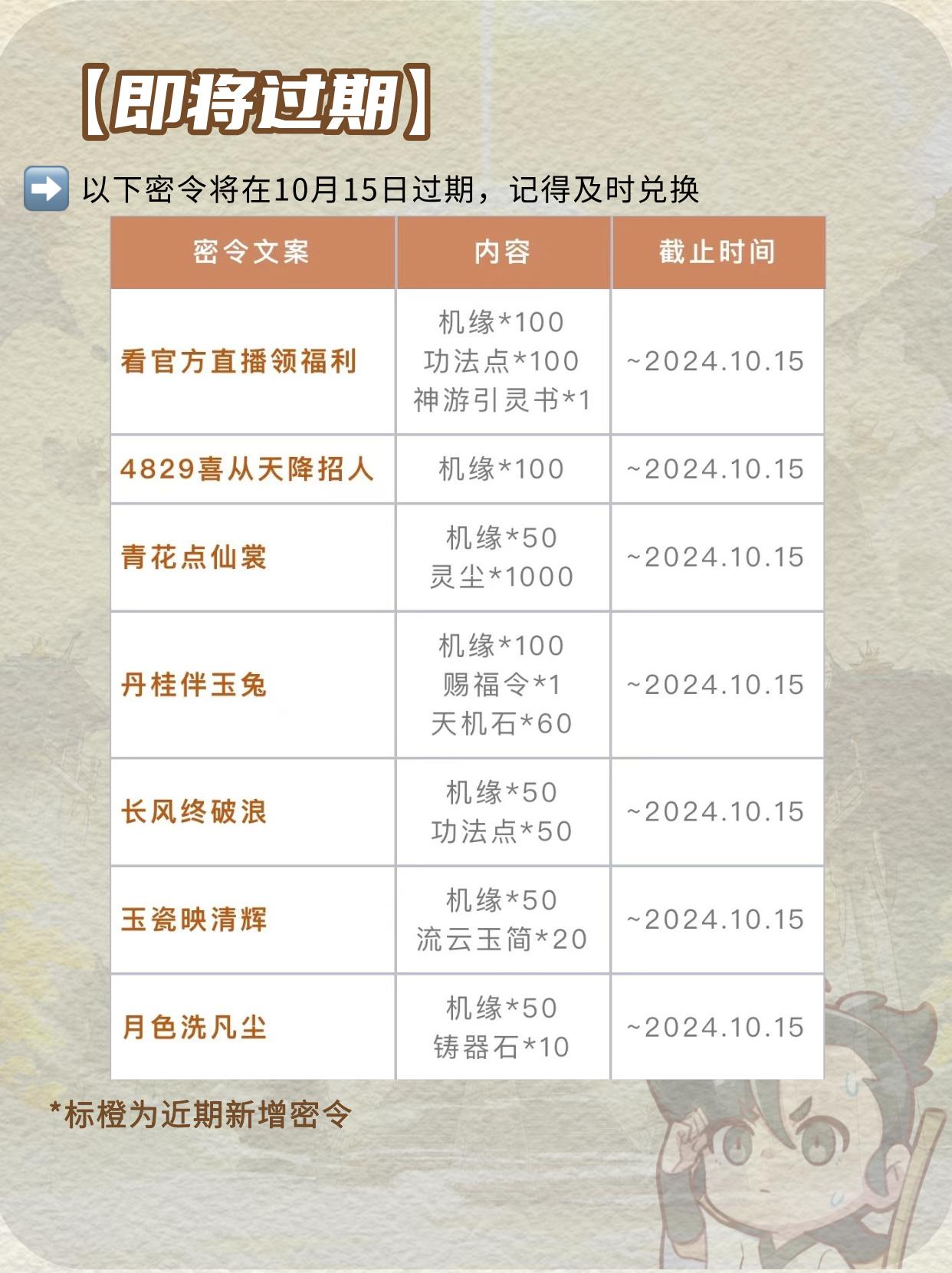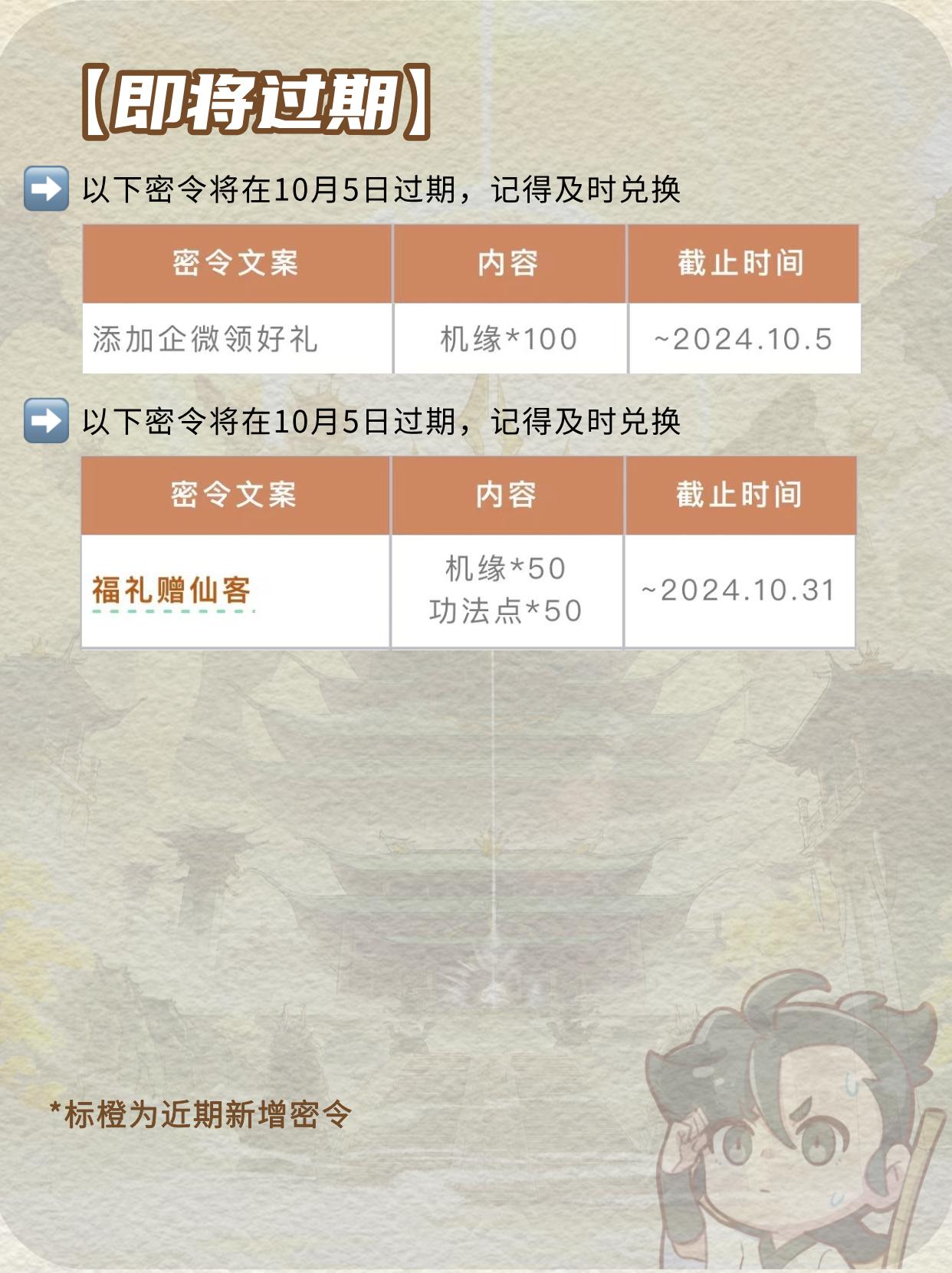 部分密令30号就过期了,快领!。