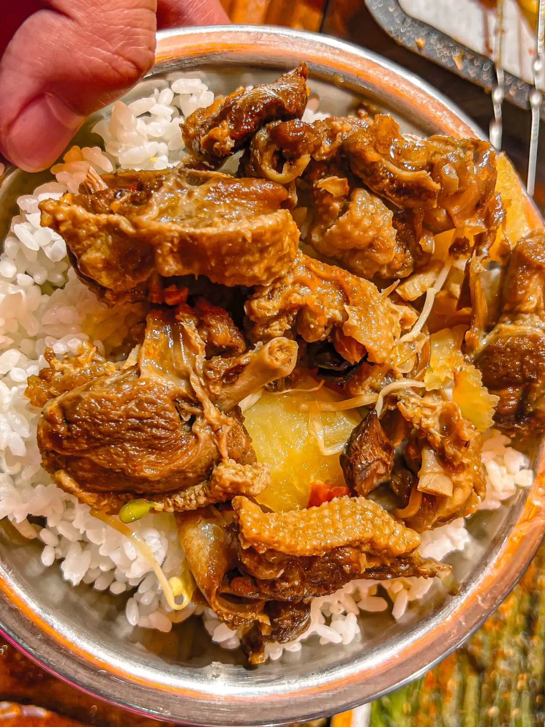 用古法碳炉炖出来的大鹅真是格外的香!选用的大鹅都是家养的,个大肉嫩!