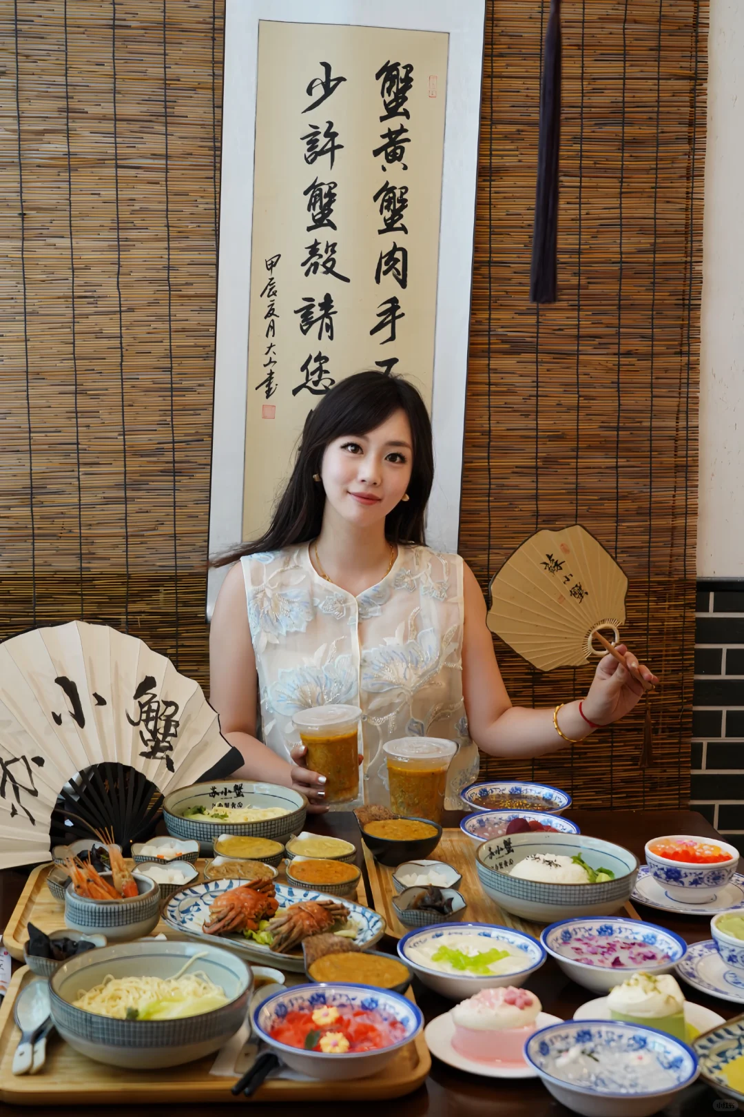 南京东路2号地铁口这家蟹粉面真的jue了! 吸出来的蟹黄饭!还有近十种漂亮甜品🍨真的爱惨了! 吸出来的蟹黄饭,创新的吃法回头率120! 店内招牌蟹全宴!四碗满满的蟹料,蟹肉、蟹黄、蟹腿肉和蟹膏!全是手工剥✔️可以淋在米饭上🍚或是面条上🍜这个含金量…一口🈵足! 再来上一份醉罗氏虾和花雕醉蟹…不用去江南!来苏小蟹就可以!