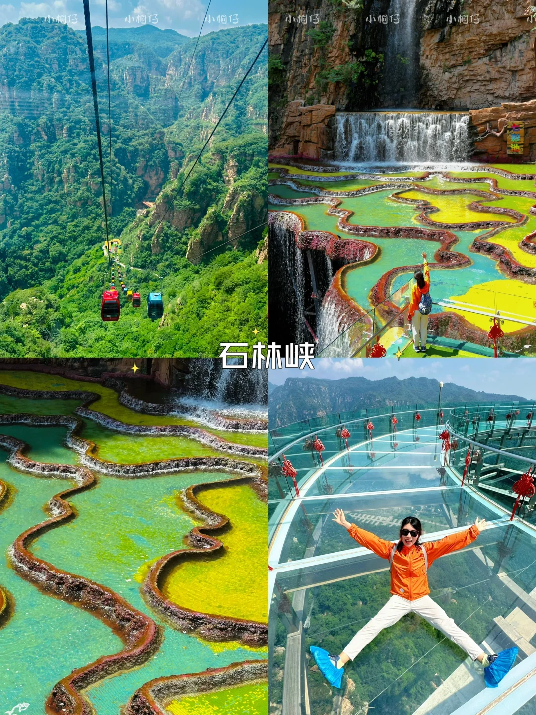 峡谷瀑布风光,超美的七彩池(马赛克砖),高山缆车🚠玻璃栈道