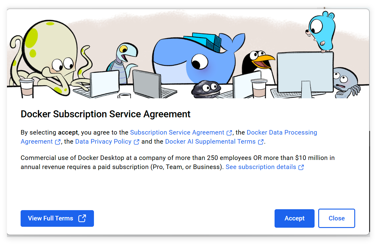 当输出 docker 版本时表明安装的软件没问题。接着双击桌面快捷方式打开 Docker Desktop:
