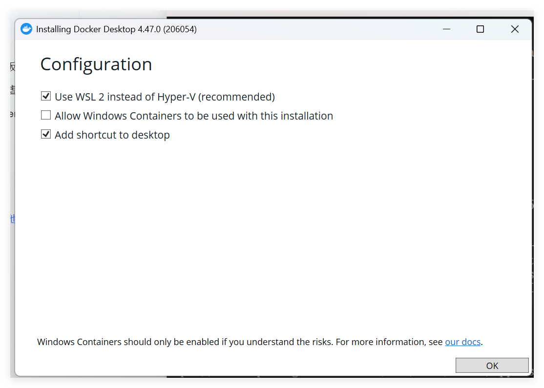 4.2 安装到其他盘上面的方式会将 Docker Desktop 安装到 C盘,这对于C盘空间紧张的人会雪上加霜,所以有必要将其安装到其他盘。