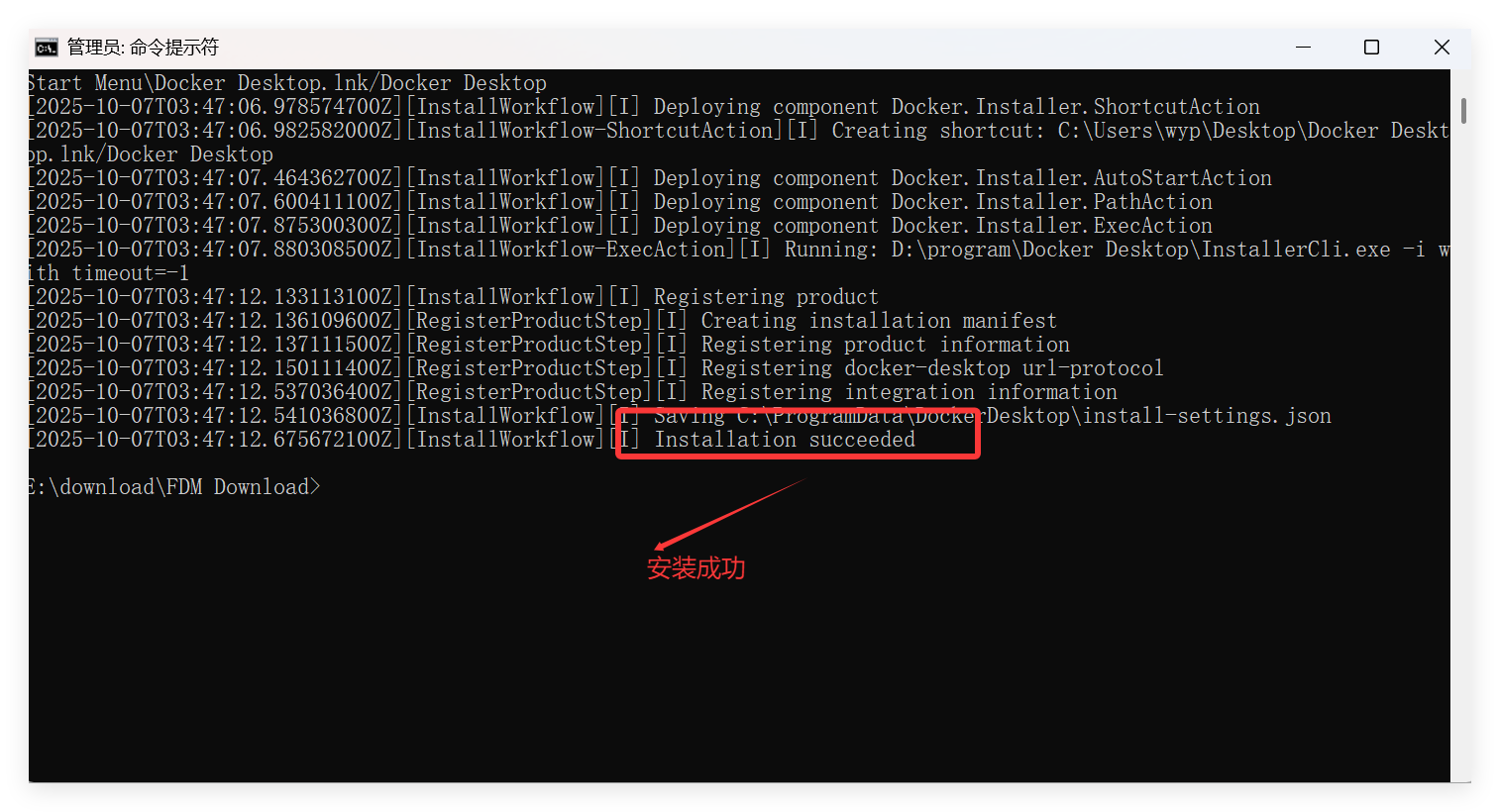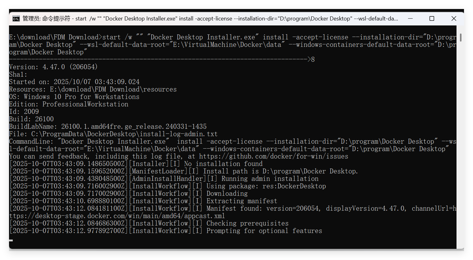 start /w "" "Docker Desktop Installer.exe" install -accept-license --installation-dir="D:\program\Docker Desktop" --wsl-default-data-root="E:\VirtualMachine\Docker\data" --windows-containers-default-data-root="D:\program\Docker Desktop"