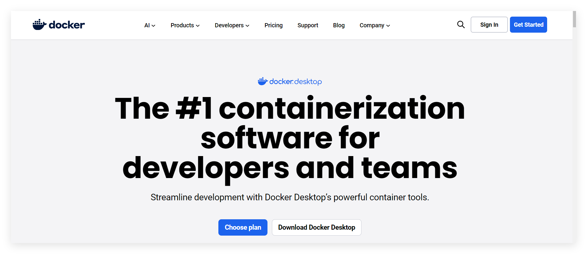 在 Docker 官网首页将鼠标移动到“Download Docker Desktop” 上便会显示下载链接: