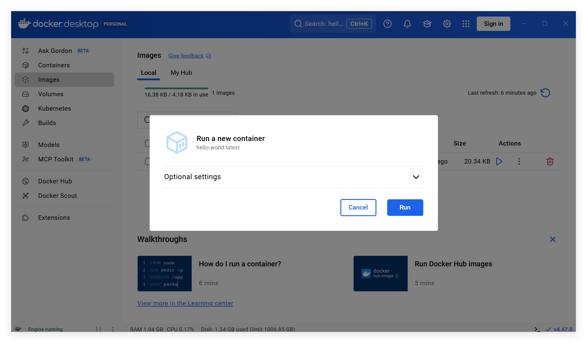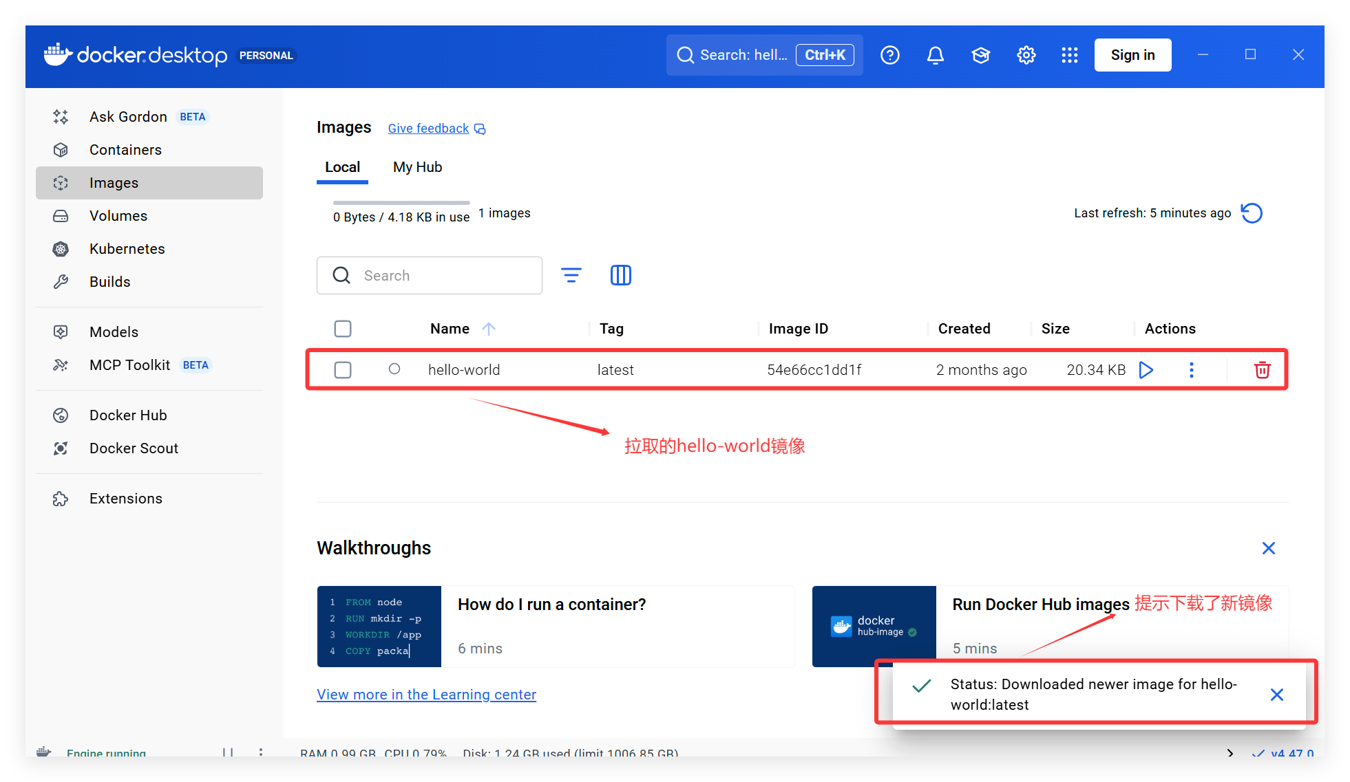 接着在搜出的记录中选择第一个,并点击“Run”,等待一会便拉取完毕: