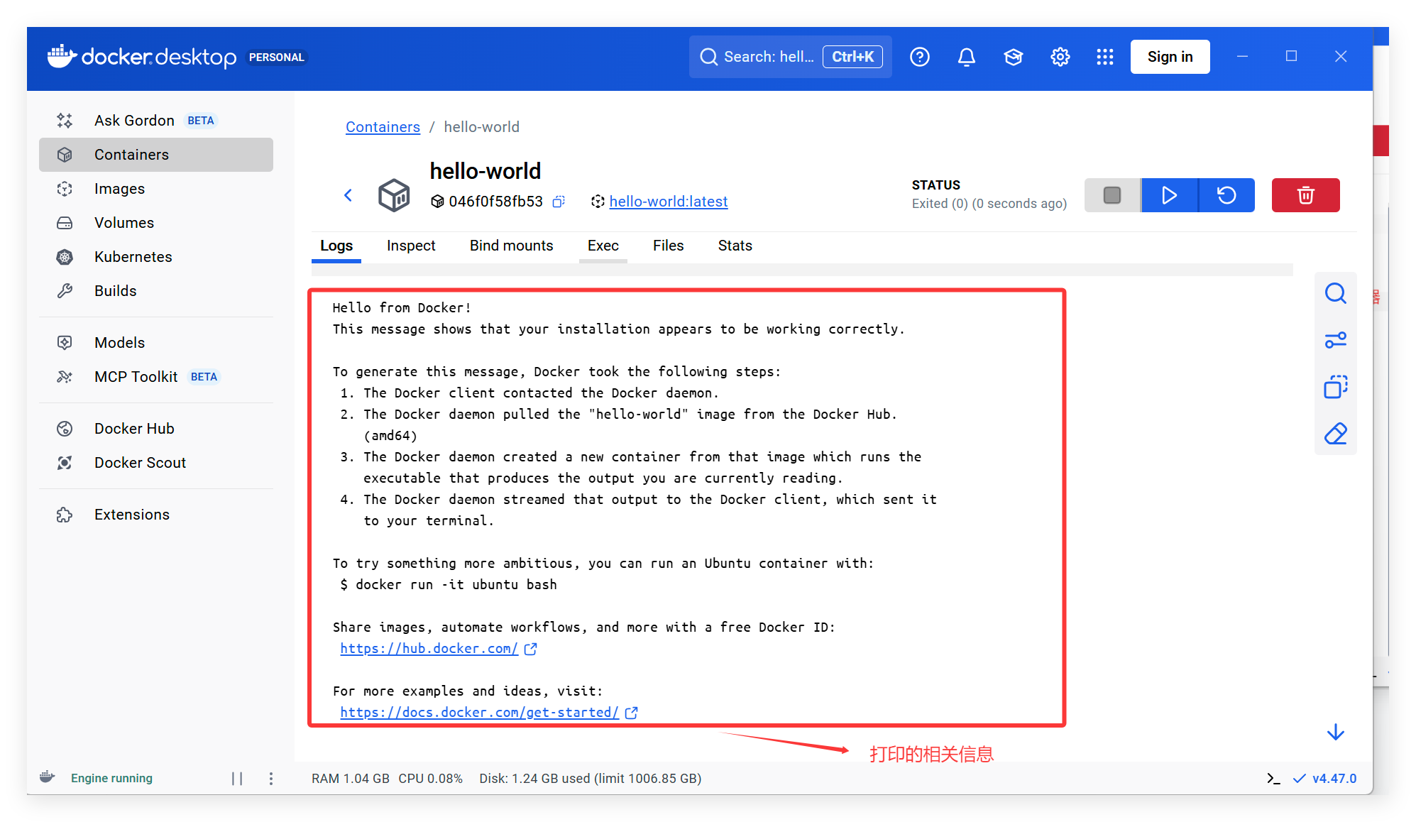 六、Hello World对于Docker而言,也可以通过 Hello World 来进行体验。