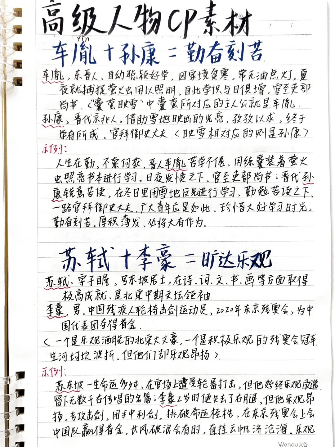人物加法素材分享 人物介绍+示例 ⛰车胤+孙康=勤奋刻苦 ⛰苏轼+李豪=旷达乐观 ⛰钱学森+程开甲=不忘初心