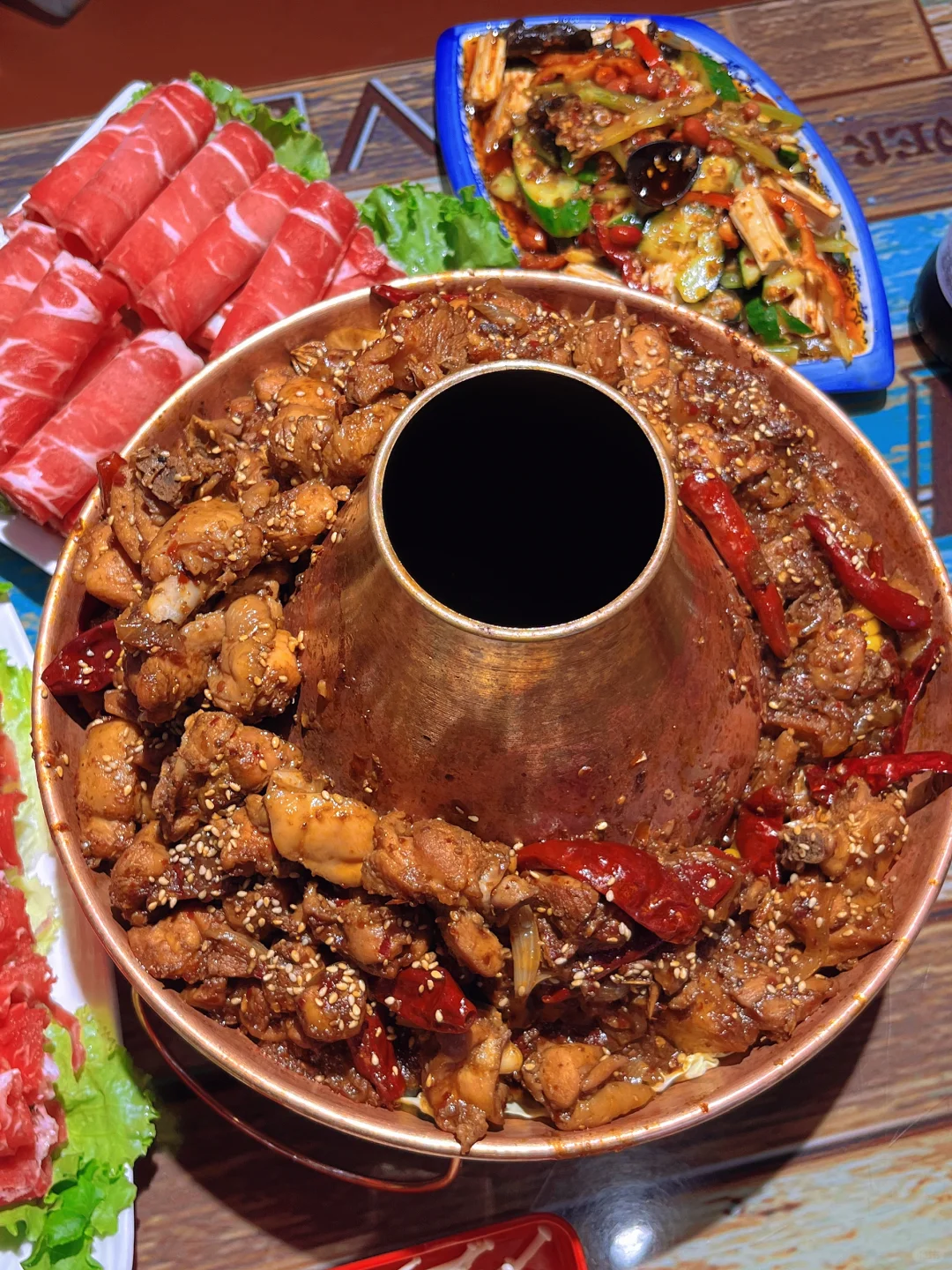 要不说景点附近美食贵,但是竟然这家火锅鸡 双人套餐(三个人的量)才不到80米.... 西安真是令人羡慕的物价 火锅鸡配上甜醋蒜泥直接香包包!