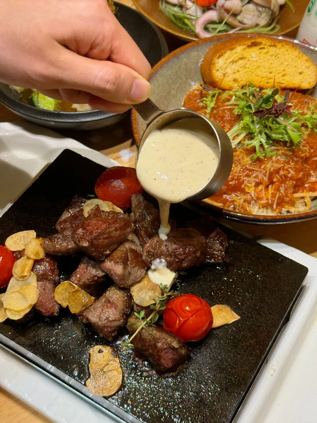 一整个石板端上来,滋滋滋滋~