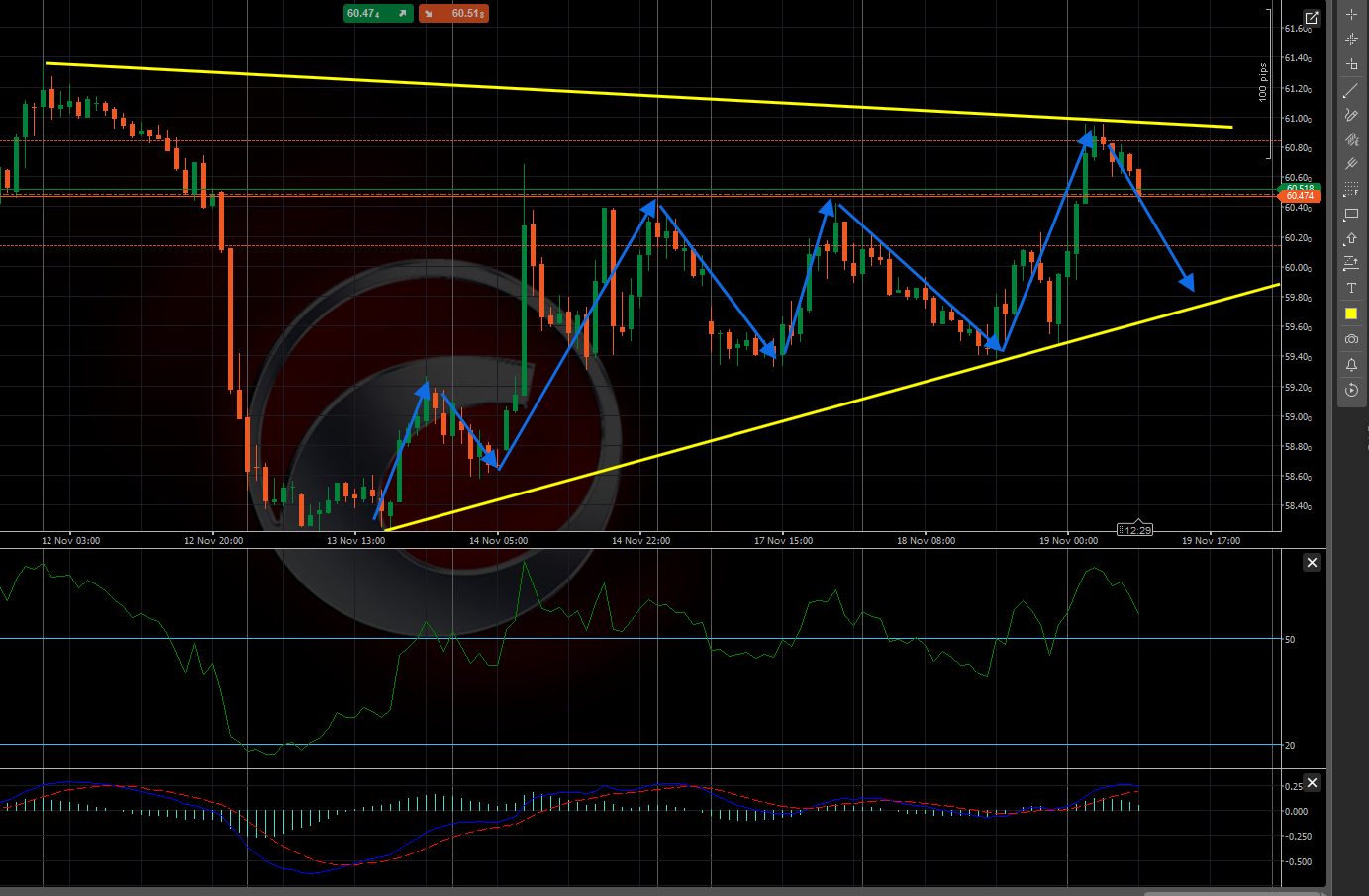 在昨日的分析中,我们提到了收敛三角形形态。目前来看,无论是上涨还是下跌均未破坏该形态,价格已运行至三角形末端约3/4处。若此次下跌未能形成有效突破,则该三角形作为反转形态的可能性将大幅降低,更可能演变为持续形态。从技术指标来看,MACD在零轴上方形成死叉,上升动能柱逐步缩量;RSI指标也开始向50水平线回落。