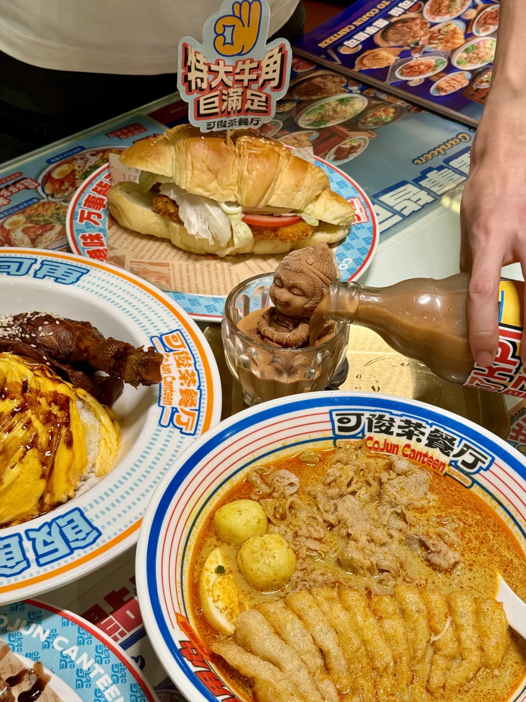 就在体育中心b出口,财富大厦一楼!! 一路过就被亮亮的招牌吸引了🤩店内很大哇 有2-4人卡座,也有一个人的桌子,简直就是社恐福音 自己一个人吃饭真的也好快乐哇~ 菜品款式选择很多,很适合周中吃顿哇! 工作日下班坐🈵了,简直就是打工人的饭堂!! 港奶、叉烧饭、粉面、多士、甜品都有哇~