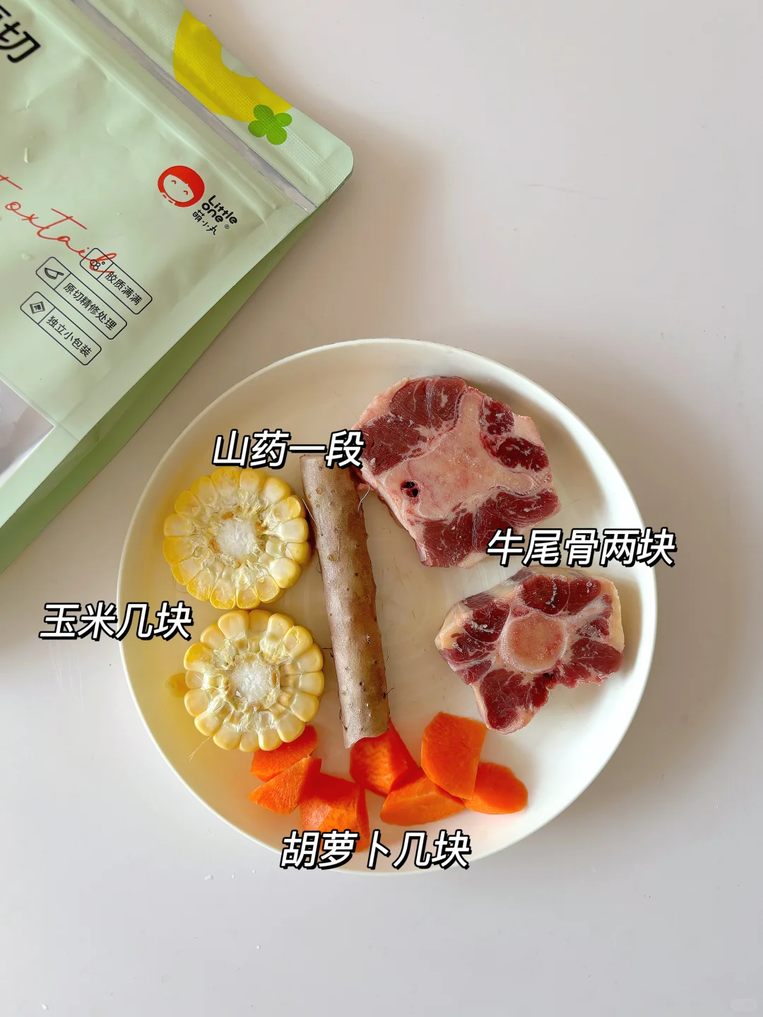 1️⃣山药一小段,玉米几块,胡萝卜一段,牛尾骨两块;
