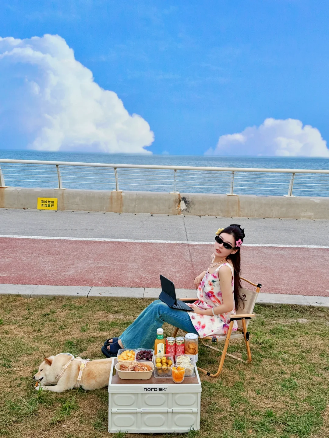 天津过周末🌊当然要带着狗狗去海边露营啦