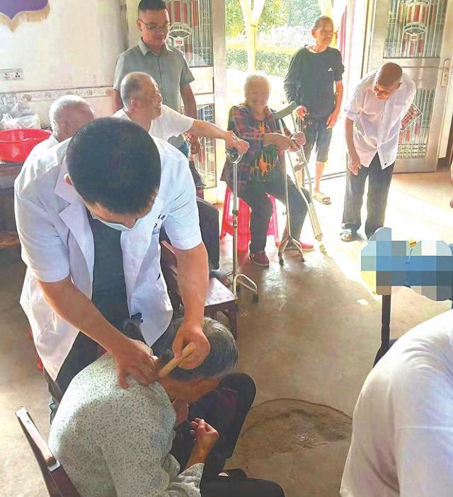 9月27日,黄梅县黄梅镇卫生院按照县卫健局“服务百姓健康行动义诊”要求,组织专家下沉到黄梅镇大胜坡村福利院免费为留守老人测血压,健康咨询,发放药品,为颈椎患者提供艾灸治疗,受到院民好评。(通讯员吴鹏高摄)