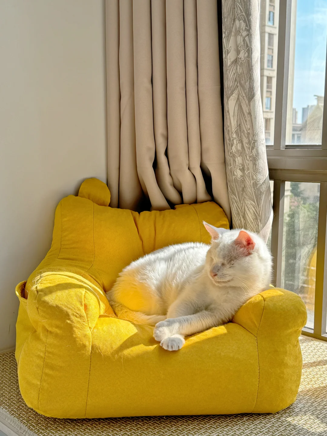 感觉宝的沙发有点大,需要我陪宝一起坐