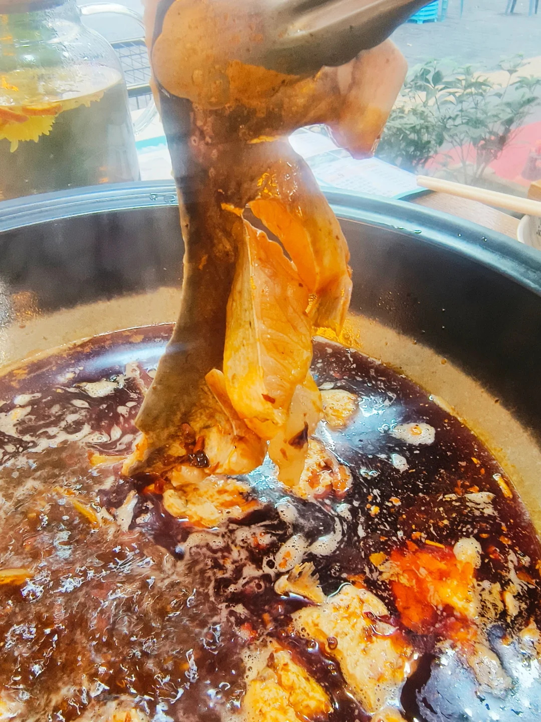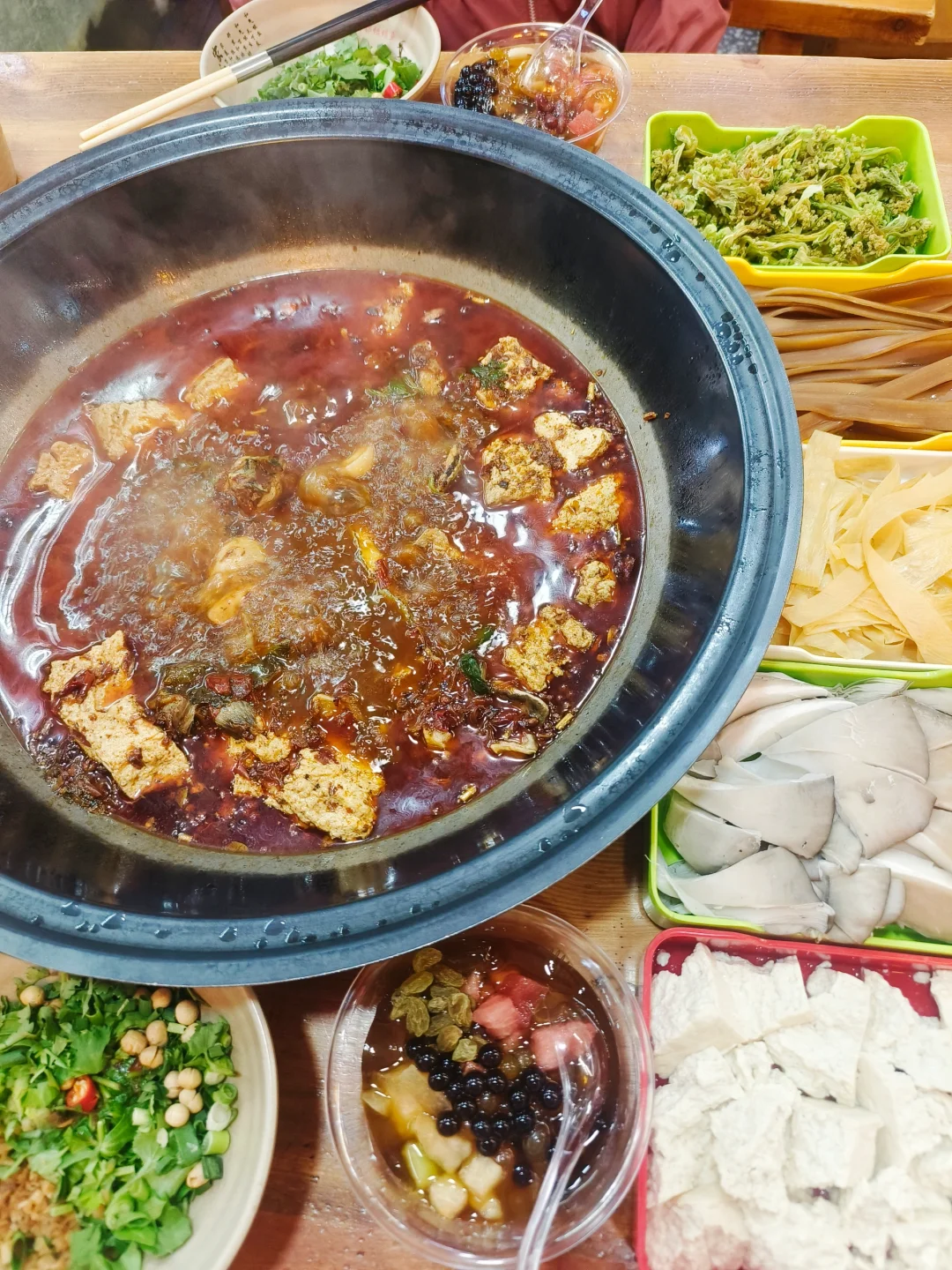 广元浆水豆花、青川干豆角、青川土香肠都是特色菜,菜品还是自助选择的。😃天凉了,来一顿鱼火锅再合适不过。
