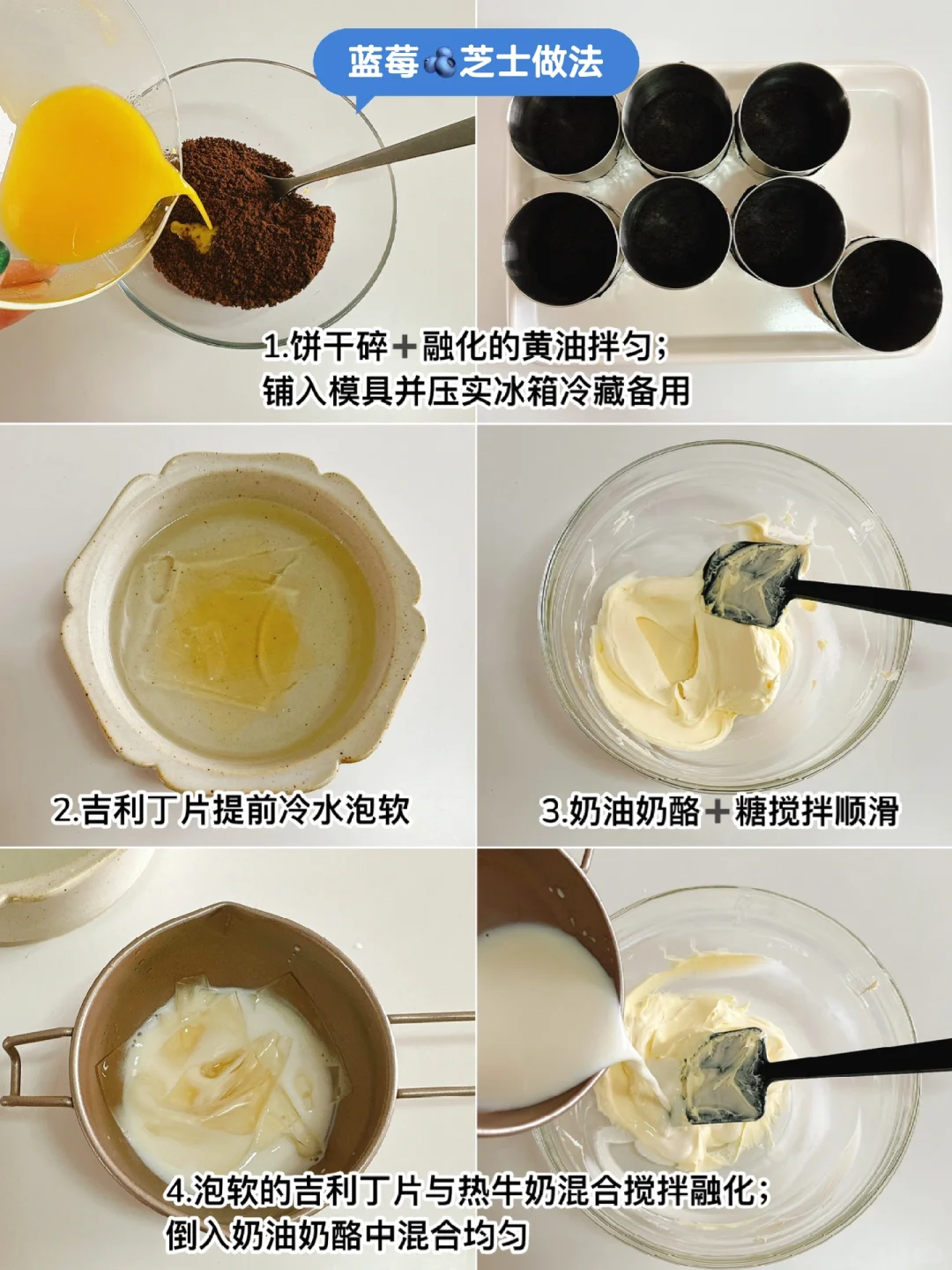 吉利丁片7g|热牛奶50g|蓝莓酱100g